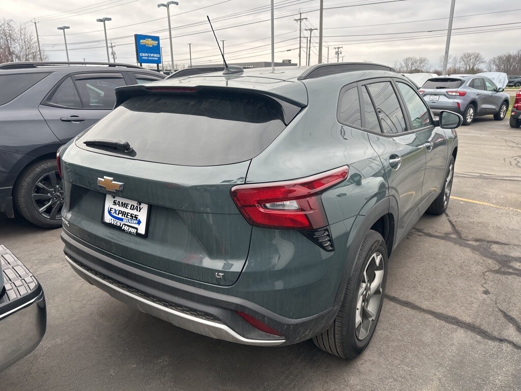 Cypress Gray 2025 Chevrolet Trax LT FWD 6-Speed Automatic 1.2L I3 DI Turbocharged DOHC 12V LEV3-ULEV70 137hp Front Doors Keyless Open, Heated Driver and Front Passenger Seats, Heated Power-Adjustable Outside Mirrors, Heated Steering Wheel, License Plate Front Mounting Package, LT Convenience Package, Preferred Equipment Group 1LT, Wrapped Steering Wheel.