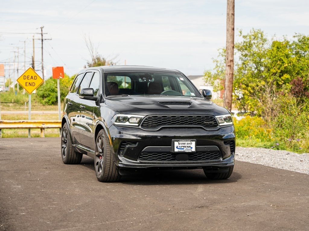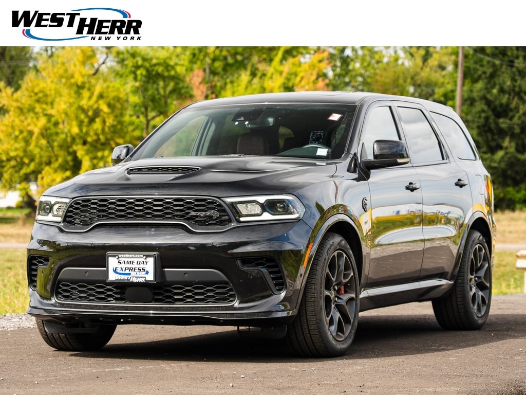 2024 Dodge Durango SRT Hellcat DB Black Crystal Clearcoat CARFAX One-Owner. Clean CARFAX. 1 USB Charging Port in Console, 12V Auxiliary Power Outlet In Console, 19 harman/kardon Amplified Speakers w/Subwoofer, 2nd Row Console w/Armrest & Storage, 3rd Row Floor Mat & Full Console, 7 & 4 Pin Wiring Harness, 825 Watt Amplifier, Adaptive Cruise Control w/Stop, Advanced Brake Assist, Black Package, Blind Spot w/Trailer Detection, Class IV Receiver Hitch, Eclipse Black Exhaust Tips, Forged Carbon Fiber Interior Accents, Full Speed Forward Collision Warning Plus, Fully automatic headlights, Gray Metallic Badges, High Performance Laguna Leather Seats, Illuminated Rear Cupholders, Lane Departure Warning Plus, Navigation system: TomTom, ParkView Rear Back-Up Camera, Power driver seat, Power Liftgate, Quick Order Package 2XY Hellcat Premium, Red Seat Belts, Satin Black Dodge Tail Lamp Badge, Suede Headliner, Trailer Brake Control, Wheels: 20" x 10" Lights Out Aluminum.