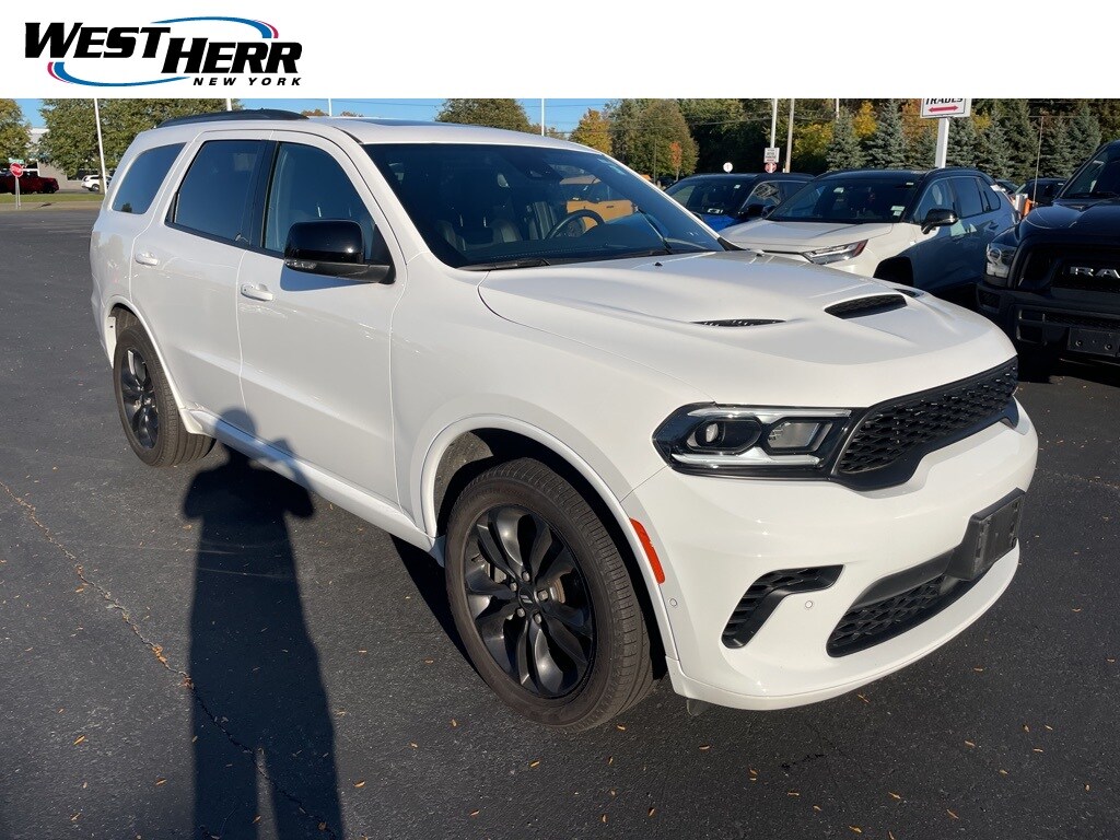 2025 Dodge Durango CARFAX One-Owner. Clean CARFAX. 115V Auxiliary Power Outlet, 180 Amp Alternator, 3rd row seats: split-bench, 4-Wheel Disc Brakes, 506 Watt Amplifier, 7 & 4 Pin Wiring Harness, 9 Alpine Amplified Speakers w/Subwoofer, ABS brakes, Adaptive Cruise Control w/Stop, Advanced Brake Assist, Auto High Beam Headlamp Control, Auto-Dimming Exterior Driver Mirror, Black Roof Rails, Blind Spot w/Trailer Detection, Bright Cargo Area Scuff Pads, Bright Front Door Sill Scuff Pads, Class IV Receiver Hitch, Dual front impact airbags, Dual front side impact airbags, Dual Remote USB Port - Charge Only, Electronic Stability Control, Exterior Mirrors w/Heating Element, Exterior Mirrors w/Memory, Exterior Mirrors w/Supplemental Signals, Front Bucket Seats, Full Speed Forward Collision Warning Plus, Gloss Black Exterior Mirrors, Heated front seats, Heated Second Row Seats, Heated steering wheel, Heavy-Duty Engine Cooling, Integrated Roof Rail Crossbars, Knee airbag, Lane Departure Warning Plus, Leather Trimmed Bucket Seats, Leather Wrapped Door Panels, LED Auxiliary Low Beam & Turn Signal, Occupant sensing airbag, Overhead airbag, ParkSense Front/Rear Park Assist w/Stop, ParkView Rear Back-Up Camera, Power 6x9 Multi-Function Foldaway Mirrors, Power driver seat, Power Driver/Passenger 4-Way Lumbar Adjust, Power Liftgate, Power Sunroof, Power Tilt & Telescopic Steering Column, Quick Order Package 2BH GT Plus, Radio/Driver Seat/Mirrors Memory, Rain Sensitive Windshield Wipers, Rear Load Leveling Suspension, Red Accent Stitching, Remote keyless entry, Security Alarm, Split folding rear seat, Steering wheel mounted audio controls, Sun Visors w/Illuminated Vanity Mirrors, Tachometer, Trailer Brake Control, Ventilated Front Seats, Voltmeter, Wireless Charging Pad.