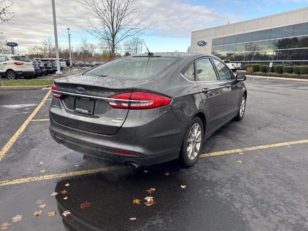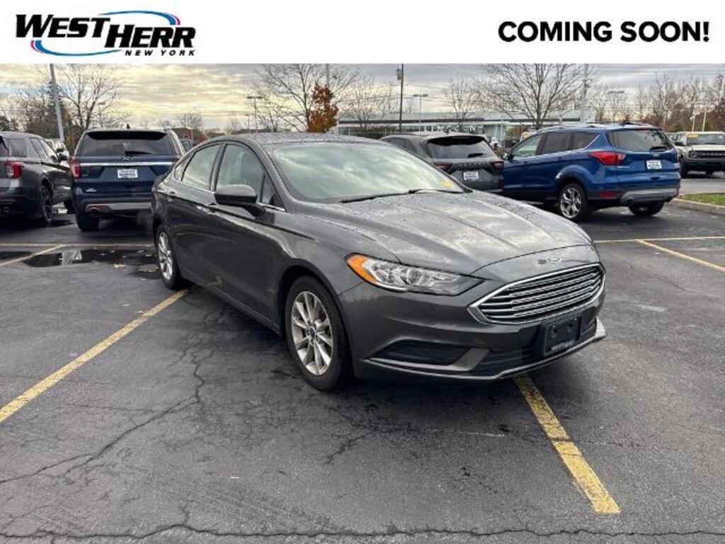 CARFAX One-Owner. Clean CARFAX. 2017 Ford Fusion SE 4-Wheel Disc Brakes, 6 Speakers, Air Conditioning, Electronic Stability Control, Equipment Group 200A, Exterior Parking Camera Rear, Four wheel independent suspension, Fully automatic headlights, Power driver seat, Radio: AM/FM Stereo/MP3/Single-CD, SiriusXM Radio, Speed control, Steering wheel mounted audio controls, SYNC Communications & Entertainment System, Wheels: 17 Premium Painted Luster Nickel. Magnetic 6-Speed Automatic FWD 23/34 City/Highway MPG Awards: * 2017 IIHS Top Safety Pick, Top Safety Pick+ * 2017 KBB.com 10 Best Sedans Under $25,000 * 2017 KBB.com Brand Image Awards * 2017 KBB.com 10 Most Awarded Brands Coming Soon! This vehicle has recently been acquired and we are currently processing the paperwork, servicing the vehicle, and taking more photos. It will be available for sale and delivery shortly. See a store manager for specific details on the current status. IMPORTANT RECALL INFORMATION. Some vehicles may be subject to unrepaired safety recalls. Go to www.safercar.gov to learn whether an individual vehicle is subject to an open recall. Reviews: * Fuel-efficient turbocharged engines; sharp handling; quiet cabin; advanced technology and safety features; improved touchscreen interface; available all-wheel drive. Source: Edmunds * Great mix of sharp handling and composed ride; turbo engines provide punchier acceleration compared to most competitors; quiet and elegantly designed interior with high-quality materials; available all-wheel drive Source: Edmunds