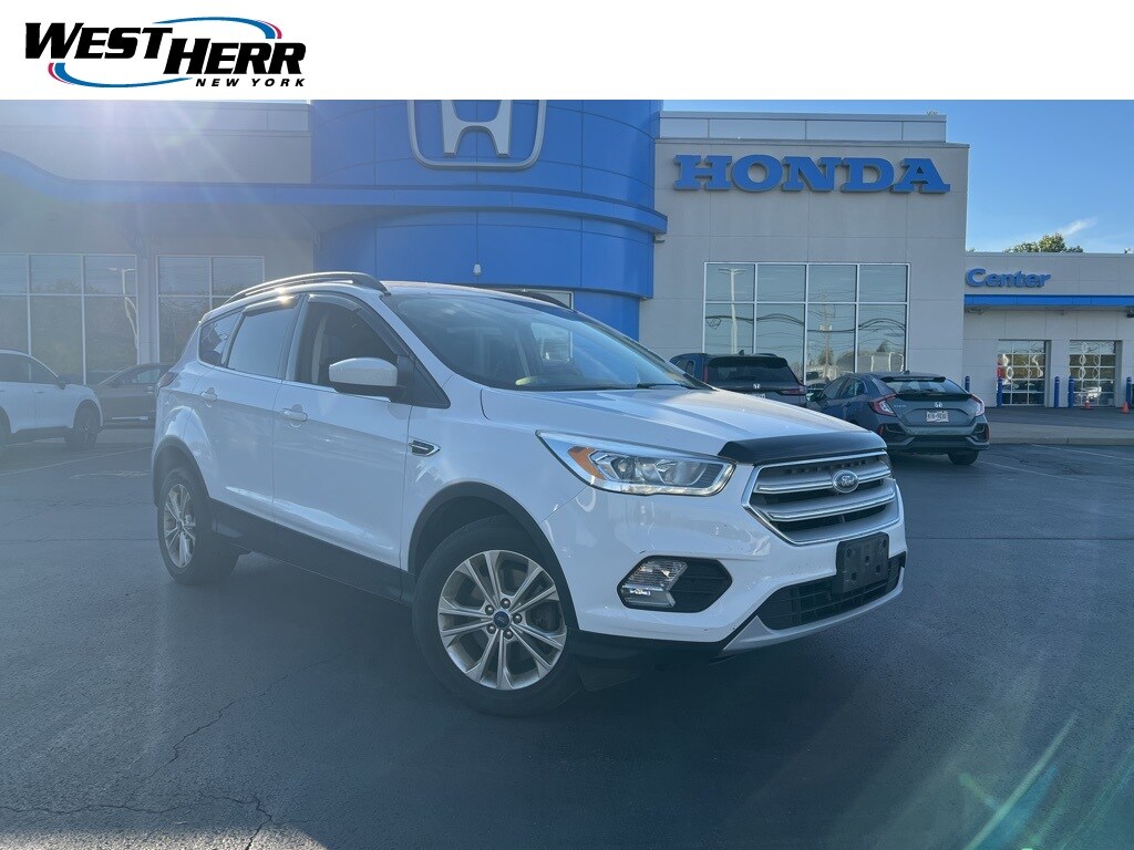 Escape SEL, 4D Sport Utility, 1.5L EcoBoost, 6-Speed Automatic, 4WD, Oxford White, Charcoal Black Leather, 4-Wheel Disc Brakes, 6 Speakers, Alloy wheels, AM/FM radio: SiriusXM, AppLink/Apple CarPlay and Android Auto, Automatic temperature control, CD player, Dual front impact airbags, Dual front side impact airbags, Equipment Group 300A, Exterior Parking Camera Rear, Front Center Armrest, Front dual zone A/C, Front fog lights, Heated door mirrors, Heated front seats, Panoramic Vista Roof, Power door mirrors, Power driver seat, Power Liftgate, Rear window wiper, Remote keyless entry, Speed-sensing steering, Steering wheel mounted audio controls, SYNC 3 Communications & Entertainment System, SYNC Connect, Wheels: 17" Sparkle Silver-Painted Aluminum. 2018 Ford Escape SEL Oxford White