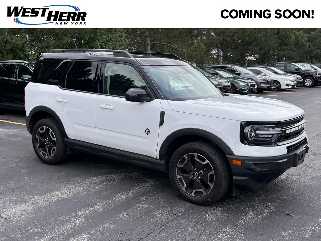 2021 Ford Bronco Sport Outer Banks Oxford White CARFAX One-Owner. Equipment Group 300A, Exterior Parking Camera Rear, Front Bucket Seats, Fully automatic headlights, Heated Front Seats, Power driver seat, Roof rack: rails only, Wheels: 18" Ebony Black-Painted Aluminum.