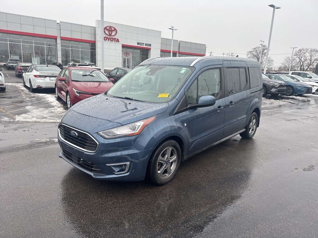 2021 Ford Transit Connect Titanium Blue Metallic 3rd row seats: bucket, 4-Wheel Disc Brakes, 9 Speakers, Adaptive Cruise Control, Air Conditioning, AM/FM radio: SiriusXM, Auto High-beam Headlights, Brake assist, Bumpers: chrome, Compass, Delay-off headlights, Driver door bin, Dual front impact airbags, Dual front side impact airbags, Emergency communication system: SYNC 3 911 Assist, Exterior Parking Camera Rear, Forward & Reverse Sensing System, Front anti-roll bar, Front Bucket Seats, Front Center Armrest, Front fog lights, Front reading lights, Front Splash Guards/Mud Flaps, Front wheel independent suspension, Fully automatic headlights, Heated front seats, High-Intensity Discharge Headlights, Lane-Keeping Assist w/Lane Keeping Alert, Leather Shift Knob, Occupant sensing airbag, Overhead airbag, Overhead console, Panoramic Fixed Glass Vista Roof, Power door mirrors, Power steering, Pre-Collision Assist w/Automatic Emergency Braking, Rear air conditioning, Remote keyless entry, Roof Rails, Split folding rear seat, Steering wheel mounted audio controls, SYNC 3 Communications & Entertainment System, Tachometer, Telescoping steering wheel, Tilt steering wheel, Traction control, Trip computer. 24/29 City/Highway MPG