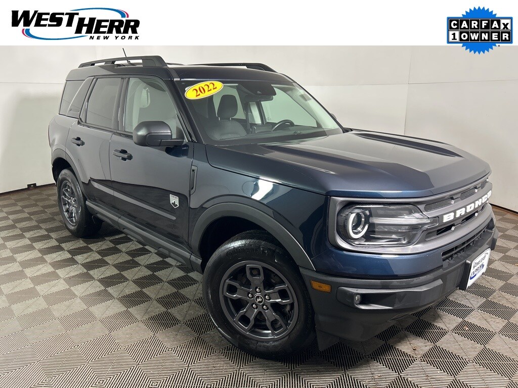CARFAX One-Owner. 2022 Ford Bronco Sport Big Bend Alto Blue Metallic Tinted Clearcoat Convenience Package, Equipment Group 200A, Front Driver & Passenger Seatback Zipper Pockets, Heated Front Bucket Seats, Intelligent Access (Lock/Unlock), Leather-Wrapped Steering Wheel, LED Fog Lamps, Rear Parking Sensors, Universal Garage Door Opener (UGDO), Wireless Charging Pad.