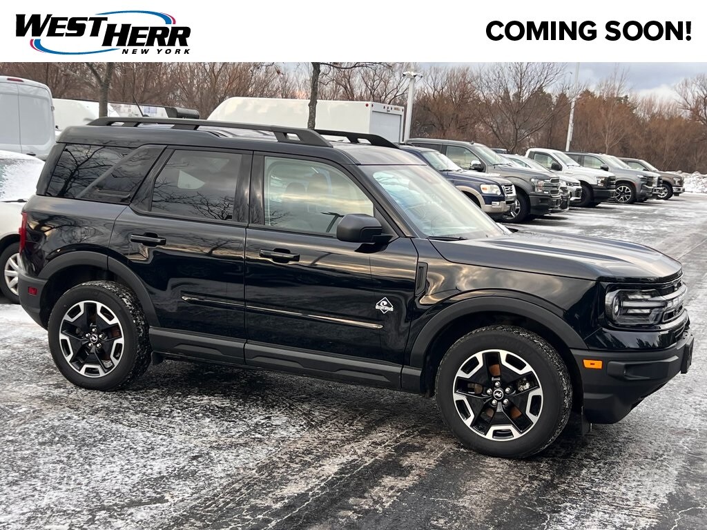 2023 Ford Bronco Sport Outer Banks Shadow Black CARFAX One-Owner. Equipment Group 300A, Front Bucket Seats, Fully automatic headlights, Heated Front Seats, Power driver seat, Power passenger seat, Rear Parking Sensors, Wheels: 18" Ebony Black-Painted Aluminum.