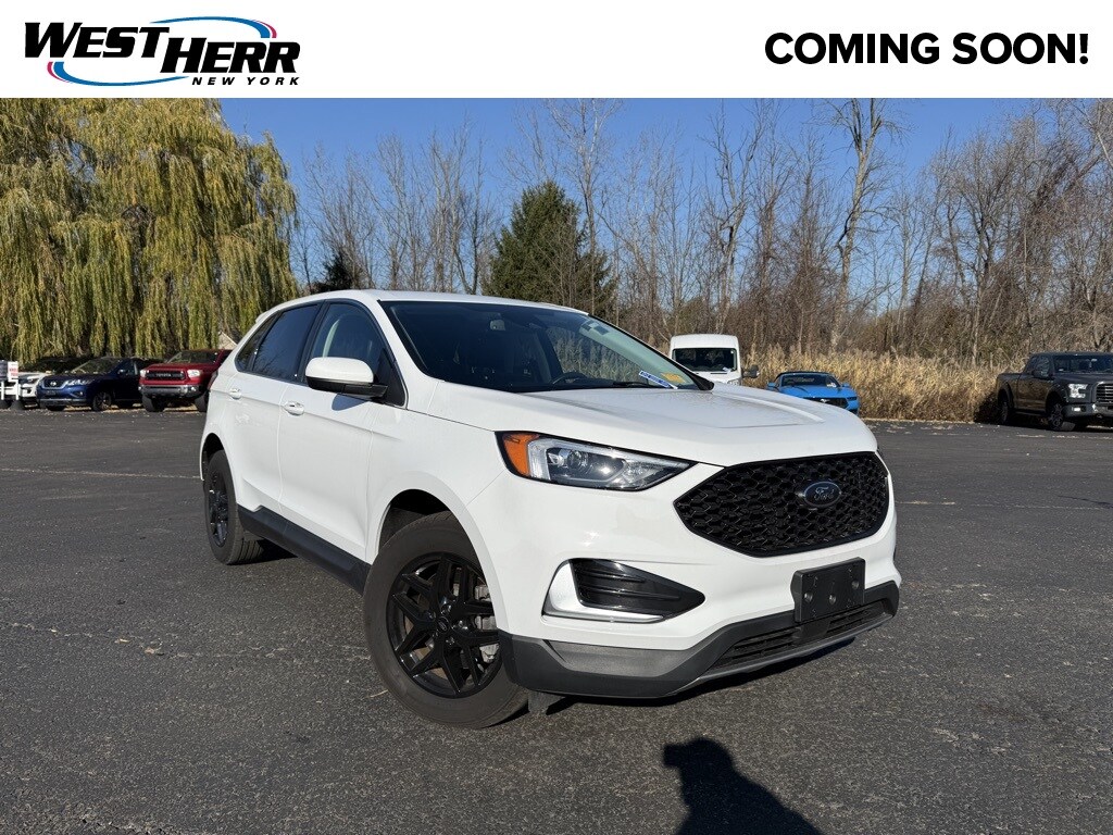 Oxford White 2024 Ford Edge SEL AWD 8-Speed Automatic EcoBoost 2.0L I4 GTDi DOHC Turbocharged VCT ActiveX Trimmed Heated Bucket Seats, Adaptive Cruise Control w/Stop & Go, Auto-dimming Rear-View mirror, Connected Navigation, Equipment Group 201A, Evasive Steering Assist, Ford Co-Pilot360 Assist+, Heated door mirrors, Heated front seats, Lane Centering, Leather-Wrapped Steering Wheel, Power door mirrors, Power driver seat, Rear Parking Sensors, Spoiler, Steering wheel mounted audio controls, SYNC 4A w/Enhanced Voice Recognition.
