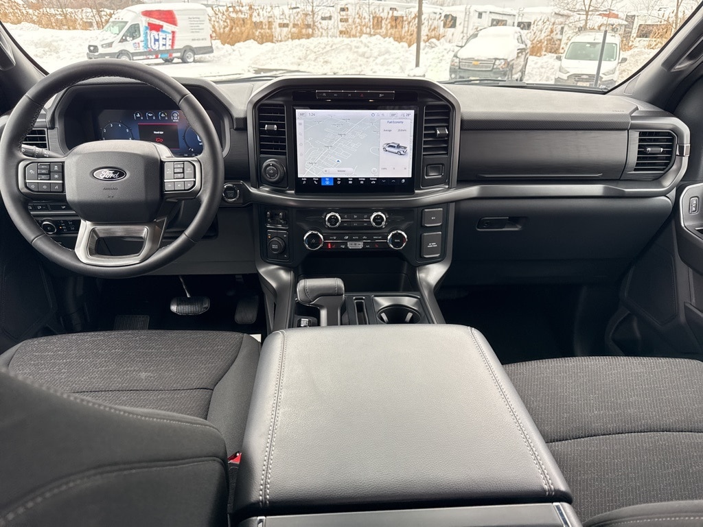 Oxford White 2024 Ford F-150 XLT 4WD 10-Speed Automatic 2.7L V6 EcoBoost 400W Cab & Bed Outlets, 6" Running Boards, Adaptive Cruise Control w/Stop & Go, Auto-Dimming Rear-View Mirror, Auto-dimming Rear-View mirror, Black Exterior Badging, Black Grille, Body-Color Front & Rear Bumpers, Cloth 40/Console/40 Front Seats, Dark Interior Appliques, Equipment Group 302A Mid, Floor Shifter, Ford BlueCruise Equipped (90-Day Trial), Gray Box Side Decal, GVWR: 6,650 lbs Payload Package, Heated Front Seats, Intelligent Access w/Push Button Start, Navigation system: Connected Navigation, Power Glass Heated Sideview Mirrors, Power-Sliding Rear Window, Remote Start System w/Remote Tailgate Release, Speed Sign Recognition, Steering wheel mounted audio controls, SYNC 4 w/Enhanced Voice Recognition, Unique Sport Cloth 40/Console/40 Front-Seats, Wheels: 18" Gloss Black, XLT Black Appearance Package.