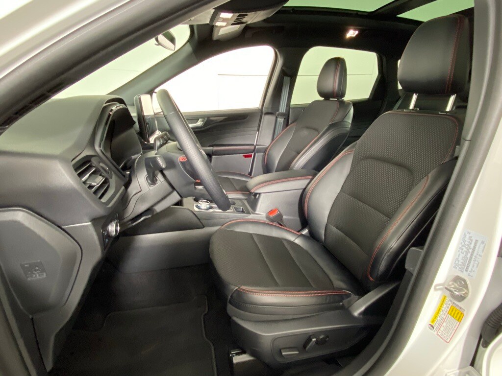 2025 Ford Escape Hybrid ST-Line Select 4-Wheel Disc Brakes, ABS brakes, Adaptive Cruise Control w/Stop-and-Go, AM/FM radio: SiriusXM, Black Roof-Rack Side Rails, Connected Navigation, Electronic Fuel Door Release, Electronic Stability Control, Equipment Group 400A, Ford Co-Pilot360 Assist+, Fully automatic headlights, Intersection Assist, Neutral Towing Capability, Panoramic Vista Roof, Pedestrian Alert Sounder, Power driver seat, Power Liftgate, Predictive Speed Assist, Rear Parking Sensor, Rear-View Camera, Steering wheel mounted audio controls, SYNC 4 w/Enhanced Voice Recognition, Tech Pack #1, Wheels: 19" Machined-Face Ebony-Painted Aluminum. Star White Metallic Tri-Coat