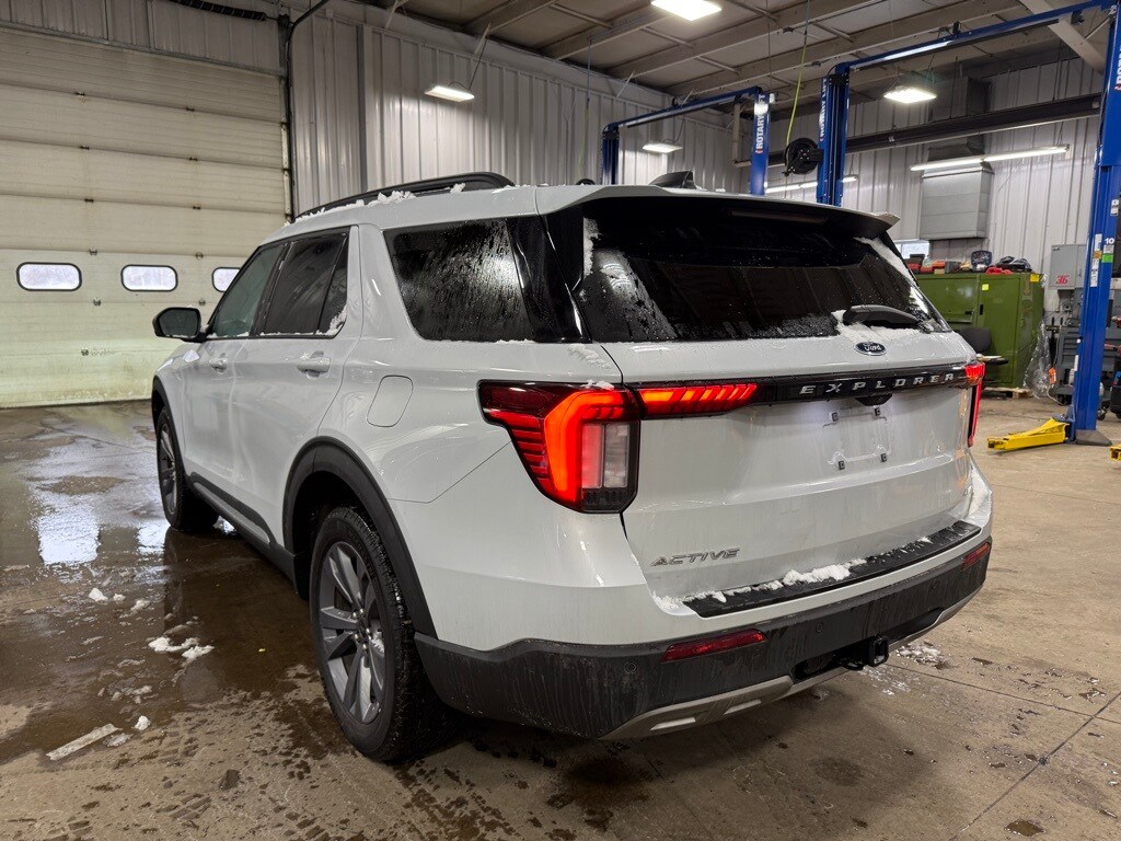 White Metallic 2025 Ford Explorer Active 4WD 10-Speed Automatic 2.3L EcoBoost I-4 Active Comfort Package, Apple CarPlay/Android Auto, Equipment Group 200A Standard Package, Exterior Parking Camera Rear, Front Fascia, Heated ActiveX Seating Material Captain's Chairs, Heated door mirrors, Heated front seats, Heated Steering Wheel, Internet access capable: FordPass Connect 5G, Navigation System, Panoramic Vista Roof w/Power Shade, Power Liftgate, Remote Start System, Second Row HVAC Controls, Steering wheel mounted audio controls, Universal Garage Door Opener (UGDO).