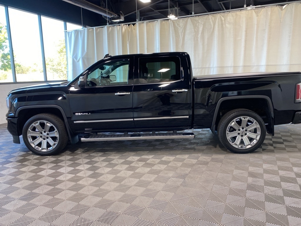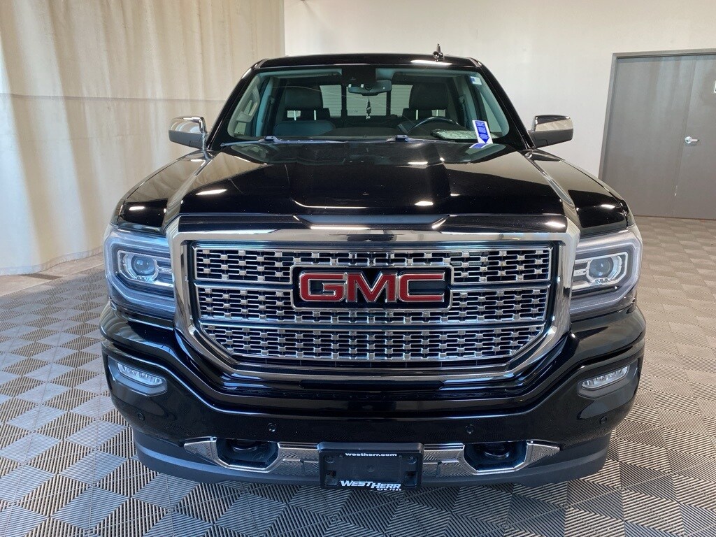 Clean CARFAX. Onyx Black 2018 GMC Sierra 1500 Denali 4WD 8-Speed Automatic with Overdrive EcoTec3 6.2L V8 110-Volt AC Power Outlet, 150 Amp Alternator, 1st & 2nd Row Color-Keyed Carpeted Floor Mats, 2-Speed Active Electronic AutoTrac Transfer Case, 6" Rectangular Chromed Tubular Assist Steps, 8" Multi-Color Customizable Driver Display, Auto-Dimming Inside Rear-View Mirror, Body Color Lower Front Bumper, Body Color Rear Bumper w/Cornersteps, Bose Speaker System, Chrome Bodyside Moldings, Chrome Door Handles, Chrome Mirror Caps, Color-Keyed Carpeting, Deep-Tinted Glass, Driver & Front Passenger Illuminated Vanity Mirrors, Dual-Zone Automatic Climate Control, Electric Rear-Window Defogger, Enhanced Driver Alert Package, EZ Lift & Lower Tailgate, Forward Collision Alert, Front Frame-Mounted Black Recovery Hooks, GMC 4G LTE, GMC Connected Access, Heated & Ventilated Front Bucket Seats, IntelliBeam Automatic High Beam On/Off Headlight, Lane Keep Assist, Leather Wrapped Heated Steering Wheel, Low Speed Forward Automatic Braking, Manual Tilt/Telescoping Steering Column, Navigation System, OnStar & GMC Connected Services Capable, Polished Exhaust Tip, Power Adjustable Pedals, Power Folding & Adjustable Heated Outside Mirrors, Power Sliding Rear Window w/Defogger, Power Sunroof, Power Windows w/Driver Express Up & Down, Preferred Equipment Group 5SA, Rear 60/40 Folding Bench Seat (Folds Up), Rear Wheelhouse Liners, Remote Keyless Entry, Remote Locking Tailgate, Remote Vehicle Starter System, Single Slot CD/MP3 Player, Steering Wheel Audio Controls, Theft Deterrent System (Unauthorized Entry), Thin Profile LED Fog Lamps, Trailering Equipment, Ultrasonic Front & Rear Park Assist, Universal Home Remote.