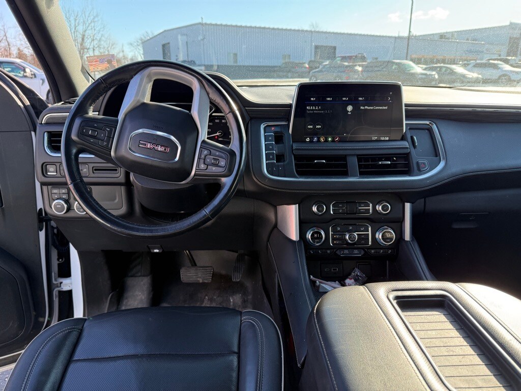 Summit White 2021 GMC Yukon SLT 4WD 10-Speed Automatic with Overdrive EcoTec3 5.3L V8 12-Way Power Seat Adjusters, 2 Presets For Outside Rearview Mirrors, 2 Presets For Power Driver Seat, 3rd Row 60/40 Power-Folding Split-Bench Seat, 3rd row seats: split-bench, Apple CarPlay/Android Auto, Auto-dimming Rear-View mirror, Bose 9-Speaker Stereo Audio System Feature, Bright Chrome Bodyside Moldings, Bright Front & Rear Door Sill Plates, Chrome Door Handles w/Body-Color Strip, Dual-Pane Panoramic Power Sunroof, Hands-Free Power Programmable Rear Liftgate, HD Surround Vision, Heated & Ventilated Driver & Front Passenger Seats, Heated 2nd Row Outboard Position Seats, Heated Automatic Steering Wheel, Heated door mirrors, Heated Driver & Front Passenger Seats, Illuminated Front GMC Emblem (LPO), Inside Rear-View Auto-Dimming Mirror, IntelliBeam Automatic High Beam On/Off, License Plate Front Mounting Package, Memory seat, Not Equipped w/Automatic Stop/Start, Outside Heated Power-Adjustable Mirrors, Power driver seat, Power Liftgate, Power Release 2nd Row 60/40 Split-Folding Bench Seat, Power Tilt & Telescopic Steering Column, Preferred Equipment Group 4SA, Rear Pedestrian Alert, Safety Alert Seat, SLT Luxury Package, SLT Premium Package, Steering wheel mounted audio controls, Universal Home Remote.