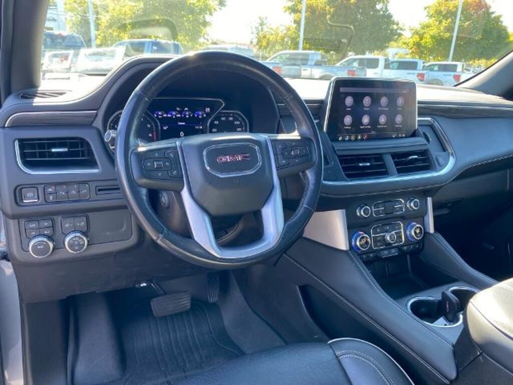 2021 GMC Yukon XL SLT 12-Way Power Seat Adjusters, 2 Presets For Outside Rearview Mirrors, 2 Presets For Power Driver Seat, 3rd Row 60/40 Power-Folding Split-Bench Seat, 4-Wheel Disc Brakes, ABS brakes, Automatic temperature control, Bose 9-Speaker Stereo Audio System Feature, Bright Chrome Bodyside Moldings, Bright Front & Rear Door Sill Plates, Chrome Door Handles w/Body-Color Strip, Dual-Pane Panoramic Power Sunroof, Electronic Stability Control, Hands-Free Power Programmable Rear Liftgate, HD Radio, HD Surround Vision, Heated & Ventilated Driver & Front Passenger Seats, Heated 2nd Row Outboard Position Seats, Heated Automatic Steering Wheel, Heated Driver & Front Passenger Seats, Inside Rear-View Auto-Dimming Mirror, License Plate Front Mounting Package, Outside Heated Power-Adjustable Mirrors, Power Liftgate, Power Release 2nd Row 60/40 Split-Folding Bench Seat, Power Tilt & Telescopic Steering Column, Preferred Equipment Group 4SA, Radio: AM/FM/SiriusXM, Rear Pedestrian Alert, Safety Alert Seat, SiriusXM w/360L, SLT Luxury Package, SLT Premium Package, Speed control, Steering wheel mounted audio controls, Universal Home Remote, Wheels: 20 x 9 6-Spoke Polished Aluminum. Satin Steel Metallic 10-Speed Automatic with Overdrive 4WD Coming Soon! This vehicle has recently been acquired and we are currently processing the paperwork, servicing the vehicle, and taking more photos. It will be available for sale and delivery shortly. See a store manager for specific details on the current status. IMPORTANT RECALL INFORMATION. Some vehicles may be subject to unrepaired safety recalls. Go to www.safercar.gov to learn whether an individual vehicle is subject to an open recall.