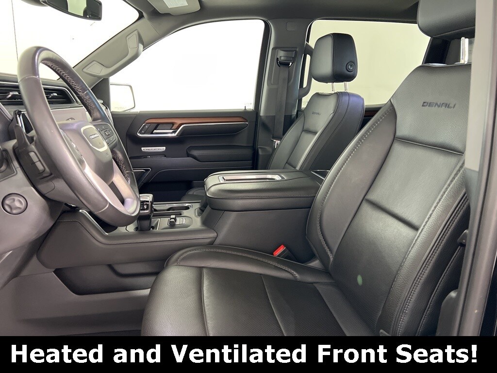 2022 GMC Sierra 1500 Denali Onyx Black EcoTec3 5.3L V8 10-Speed Automatic 4WD HD SURROUND VISION W/BED VIEW, 13.4" DIAG COLOR TOUCH SCREEN GMC PREMIUM INFOTAINMENT SYSTEM W/GOOGLE BUILT-IN COMPATIBILITY, 12.3" DIAG DIGITAL DRIVER INFORMATION CENTER, 10-Way Power Driver Seat Adjuster w/Lumbar, 10-Way Power Passenger Seat Adjuster w/Lumbar, Apple CarPlay/Android Auto, Brake assist, Chrome Wheel To Wheel Assist Steps, Front dual zone A/C, Heated 2nd Row Outboard Seats, Heated Driver & Front Outboard Passenger Seating, Heated Steering Wheel, Hitch Guidance, Power Sunroof, Premium Bose 7-Speaker Sound System, Spray-On Pickup Bed Liner w/Denali Logo, Trailering Package, Ventilated Driver & Front Passenger Seats, Wireless Charging.