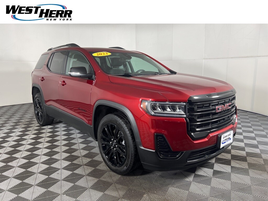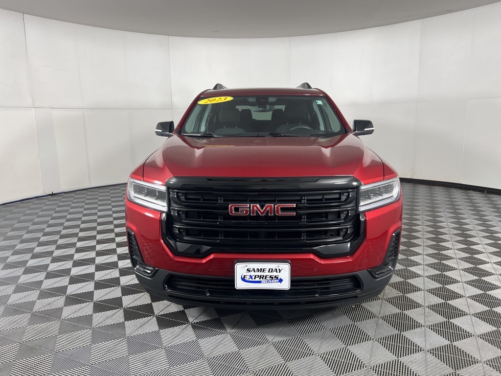 2023 GMC Acadia SLE Volcanic Red Tintcoat CARFAX One-Owner. 120-Volt Power Outlet, 20" Machined Aluminum Wheels, 3rd row seats: split-bench, 4-Way Manual Driver Seat Adjuster, 4-Way Manual Passenger Seat Adjuster, 4-Wheel Disc Brakes, 6-Passenger (2-2-2 Seating Configuration), 6-Speaker Audio System Feature, 8-Way Power Driver Seat Adjuster, ABS brakes, Apple CarPlay/Android Auto, Brushed Aluminum Roof Rails, Driver Convenience Package, Dual front impact airbags, Dual front side impact airbags, Electronic Stability Control, Elevation Edition, Front Bucket Seats, Front Center Armrest, Gloss Black Roof Rails, Hands Free Power Programmable Liftgate, Heated Driver & Front Passenger Seats, Knee airbag, Occupant sensing airbag, Overhead airbag, Power Driver Lumbar Control Seat Adjuster, Preferred Equipment Group 3SA, Radio: AM/FM w/8" Diagonal Multi-Touch Display, Remote keyless entry, Remote Start, SiriusXM Radio, Steering wheel mounted audio controls, Tachometer, Voltmeter, Wireless Apple CarPlay/Wireless Android Auto.