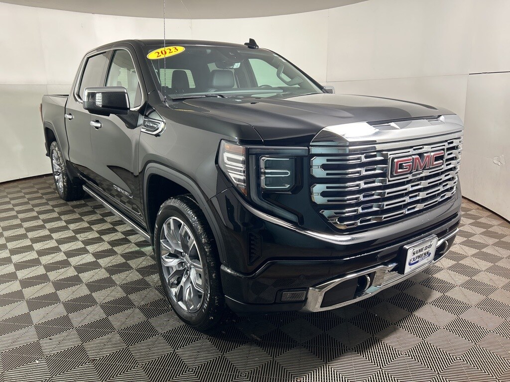 CARFAX One-Owner. Clean CARFAX. 2023 GMC Sierra 1500 Denali Onyx Black 10-Speed Automatic, 4WD, Jet Black w/Leather-Appointed Seat Trim, 120-Volt Bed Mounted Power Outlet, 120-Volt Instrument Panel Power Outlet, 170 Amp Alternator, 2 Charge/Data USB Ports Inside Center Console, 2 Type-C Charge-Only Rear USB Ports, 2 USB Ports, Adaptive Cruise Control, Auto-Locking Rear Differential, Auxiliary External Transmission Oil Cooler, Bed View Camera, Chrome Header w/Signature Denali Chrome Grille, Chrome Recovery Hooks, Chrome Wheel To Wheel Assist Steps, Color-Keyed Carpeting Floor Covering, Compass, Deep-Tinted Glass, Denali Reserve Package, Electric Rear-Window Defogger, Electrical Steering Column Lock, Floor-Mounted Center Console, Front Rainsensing Wipers, GMC Connected Access Capable, GMC MultiPro Power Steps, HD Surround Vision, Heated 2nd Row Outboard Seats, Heated Driver & Front Outboard Passenger Seating, Heavy-Duty Air Filter, Hill Descent Control, Hitch Guidance, Hitch Guidance w/Hitch View, In-Vehicle Trailering App, Integrated Trailer Brake Controller, Keyless Open & Start, LED Cargo Area Lighting, Multicolor 15" Diagonal Head-Up Display, Navigation System, OnStar & GMC Connected Services Capable, Perimeter Lighting, Power Door Locks, Power Front Passenger Windows w/Express Up/Down, Power Front Windows w/Driver Express Up/Down, Power Rake & Telescoping Steering Column, Power Rear Windows w/Express Down, Power Sliding Rear Window w/Rear Defogger, Power Sunroof, Preferred Equipment Group 5SA, Premium Bose 7-Speaker Sound System, Push Button Start, Rear Camera Mirror, Rear Cross Traffic Braking, Rear Pedestrian Detection, Rear Wheelhouse Liners, Remote Vehicle Starter System, SiriusXM w/360L, Spray-On Pickup Bed Liner w/Denali Logo, Steering Wheel Audio Controls, Technology Package, Theft Deterrent System (Unauthorized Entry), Trailer Camera Provisions, Trailer Side Blind Zone Alert, Trailering Package, Ultrasonic Front & Rear Park Assist, Universal Home Remote, Ventilated Driver & Front Passenger Seats, Wheel Locks (Set of 4) (LPO), Wheels: 22" x 9" Painted Aluminum, Wi-Fi Hotspot Capable, Wireless Charging, Wireless Phone Projection.