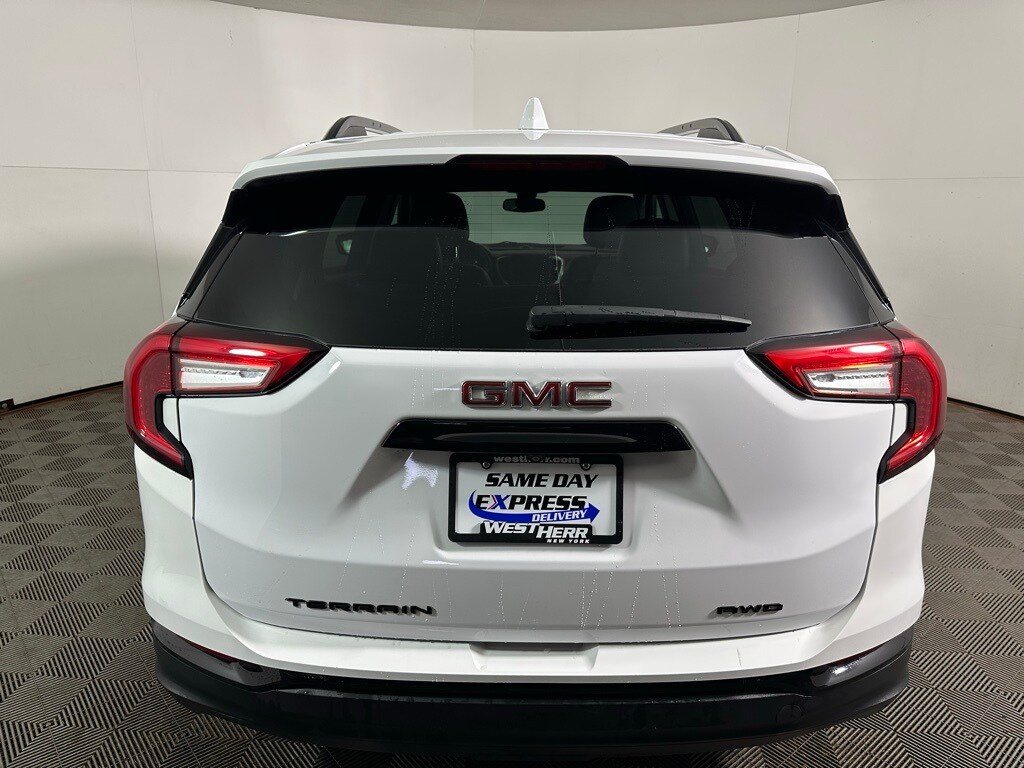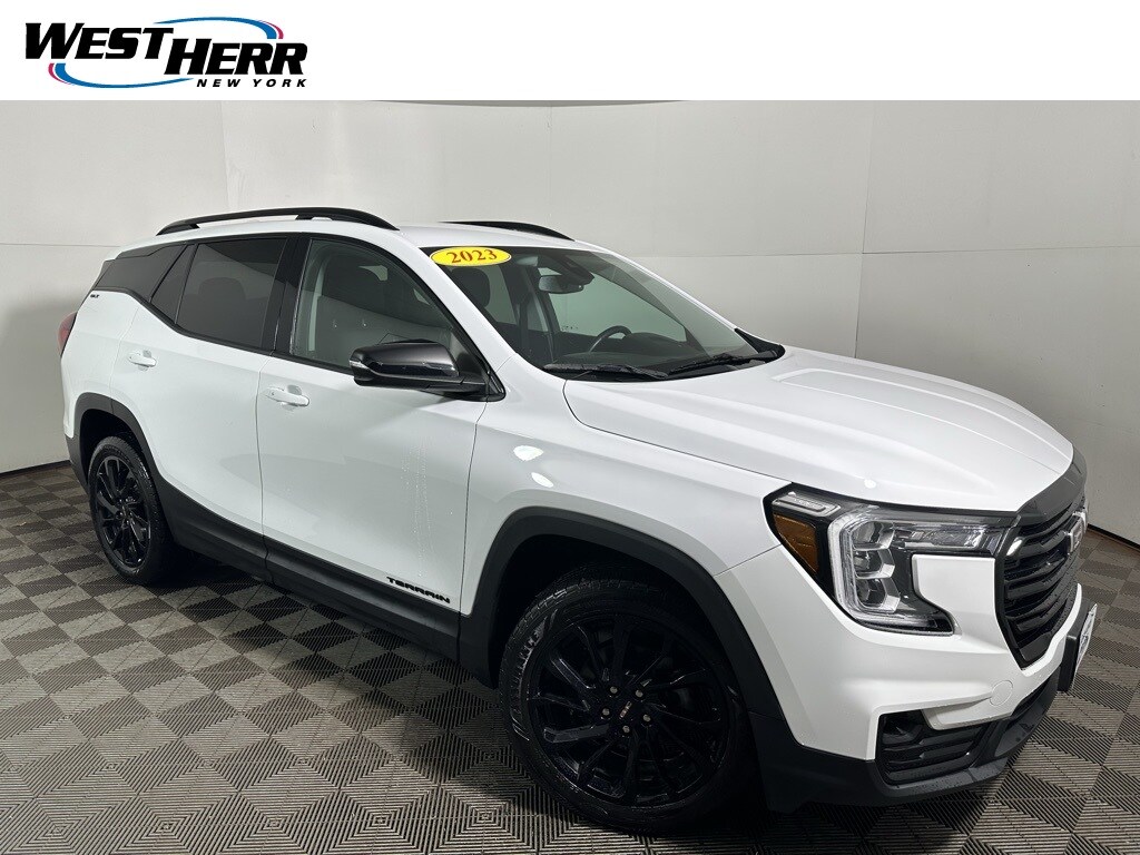 CARFAX One-Owner. Clean CARFAX. 2023 GMC Terrain SLT Summit White AWD, Black GMC Center Caps w/Red GMC Lettering, Black Mirror Caps, Darkened Front Grille, Elevation Edition, License Plate Front Mounting Package, Preferred Equipment Group 4SA, Roof-Mounted Luggage Rack Side Rails, Wheels: 19" Gloss Black Aluminum.