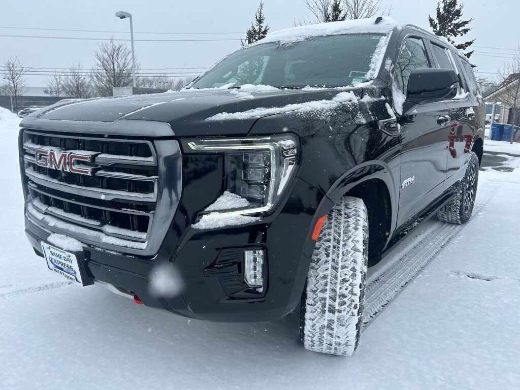 Onyx Black 2023 GMC Yukon AT4 4WD 10-Speed Automatic with Overdrive EcoTec3 5.3L V8 4WD, 15" Diagonal Multi-Color Head-Up Display, 2 Presets For Outside Rearview Mirrors, 3 Years of GMC Connected Services, 3 Years of OnStar Safety & Security, 3rd Row 60/40 Power-Folding Split-Bench Seat, AT4 Premium Package, Black Roof-Mounted Luggage Rack Side Rails, Bose 9-Speaker Stereo Audio System Feature, Bright Front & Rear Door Sill Plates, Dual-Pane Panoramic Power Sunroof, Front High-Approach Angle Fascia, Hands-Free Power Programmable Rear Liftgate, HD Surround Vision, Heated & Ventilated Driver & Front Passenger Seats, Heated 2nd Row Outboard Position Seats, Heated Driver & Front Passenger Seats, Heated Steering Wheel, Heavy-Duty Air Filter, Hill Descent Control, Inside Rear-View Auto-Dimming Mirror, License Plate Front Mounting Package, Outside Heated Power-Adjustable Mirrors, Power Release 2nd Row 60/40 Split-Folding Bench Seat, Power Tilt & Telescopic Steering Column, Power-Retractable Assist Steps, Preferred Equipment Group 4SB, Rear Pedestrian Alert, Red Horizontal-Mounted Recovery Hooks, Safety Alert Seat, Technology Package, Universal Home Remote, Wireless Charging.