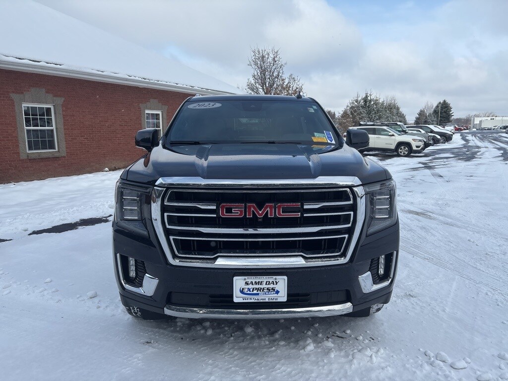 2023 GMC Yukon SLT Midnight Blue Metallic 2 Presets For Outside Rearview Mirrors, 2 Presets For Power Driver Seat, 3rd Row 60/40 Power-Folding Split-Bench Seat, Adaptive Cruise Control, Bose 9-Speaker Stereo Audio System Feature, Bright Chrome Bodyside Moldings, Bright Front & Rear Door Sill Plates, Chrome Door Handles w/Body-Color Strip, Enhanced Automatic Emergency Braking, Hands-Free Power Programmable Rear Liftgate, HD Surround Vision, Heated & Ventilated Driver & Front Passenger Seats, Heated 2nd Row Outboard Position Seats, Heated Driver & Front Passenger Seats, Heated Steering Wheel, Inside Rear-View Auto-Dimming Mirror, License Plate Front Mounting Package, Outside Heated Power-Adjustable Mirrors, Power Release 2nd Row 60/40 Split-Folding Bench Seat, Power Tilt & Telescopic Steering Column, Preferred Equipment Group 4SA, Rear Pedestrian Alert, Safety Alert Seat, SLT Luxury Package, Universal Home Remote, Wireless Charging.