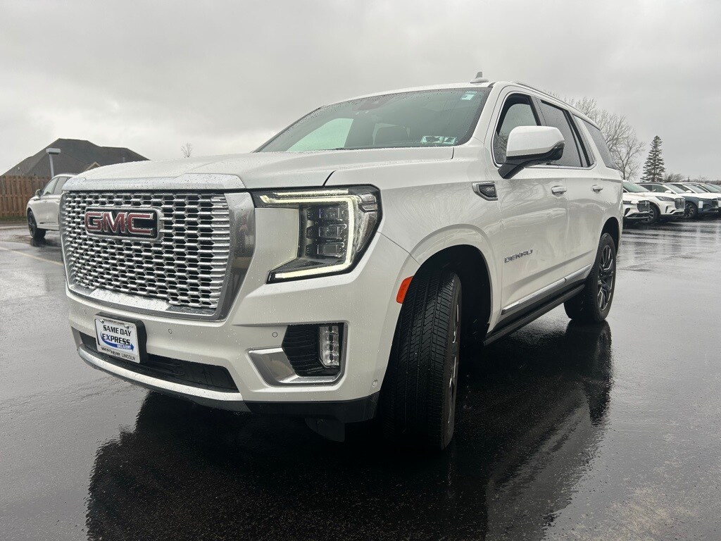 White Frost Tricoat 2024 GMC Yukon Denali 4WD 10-Speed Automatic with Overdrive EcoTec3 6.2L V8 4WD, 12-Way Power Seat Adjusters, 15" Diagonal Multi-Color Head-Up Display, 2 Presets For Outside Rearview Mirrors, 3rd Row 60/40 Power-Folding Split-Bench Seat, Adaptive Cruise Control, Advanced Security Package, Advanced Technology Package, Air Ride Adaptive Suspension, Bose 14-Speaker Surround w/CenterPoint, Bright Front & Rear Door Sill Plates, Chrome Door Handles w/Body-Color Strip, Denali Reserve Package, Dual Exhaust System, Dual-Pane Panoramic Power Sunroof, Electronic Limited Slip Differential (eLSD), Enhanced Automatic Emergency Braking, Enhanced Automatic Parking Assist, Floor Console, Galvano Bodyside Moldings, Glass Breakage Sensor, Hands-Free Power Programmable Rear Liftgate, HD Surround Vision, Heated 2nd Row Outboard Position Seats, Heated Driver & Front Passenger Seats, Heated Steering Wheel, Hill Descent Control, Inside Rear-View Auto-Dimming Mirror, Inside Rearview Auto-Dimming Rear Camera Mirror, License Plate Front Mounting Package, Max Trailering Package, Outside Heated Power-Adjustable Mirrors, Perforated Heated & Ventilated Dr & Frt Pass Seats, Power Release 2nd Row Bucket Seats, Power Tilt & Telescopic Steering Column, Power-Retractable Assist Steps, Preferred Equipment Group 5SA, Premium Capability Package w/Active Response 4WD, Rear Camera Mirror Washer, Rear Pedestrian Alert, Reverse Automatic Braking, Safety Alert Seat, Super Cruise, Theft-Deterrent Alarm System, Universal Home Remote, Vehicle Inclination Sensor, Vehicle Interior Movement Sensor, Wheel Locks (Set of 4) (LPO), Wheels: 22" x 9" Bright Machined Aluminum, Wireless Charging.