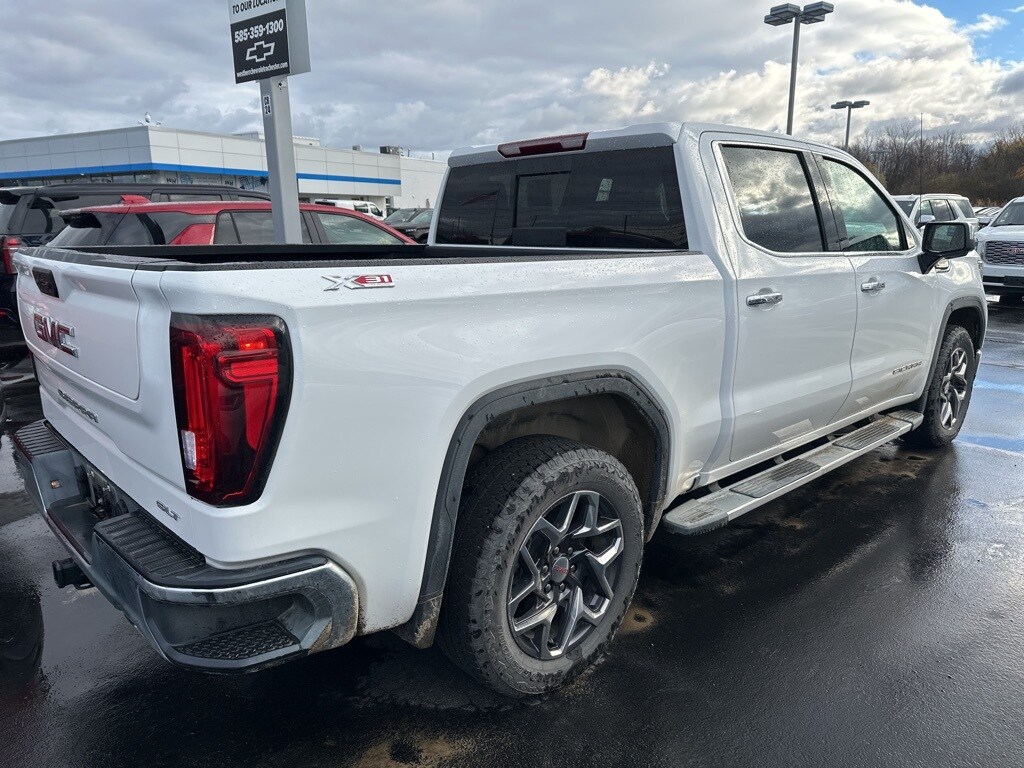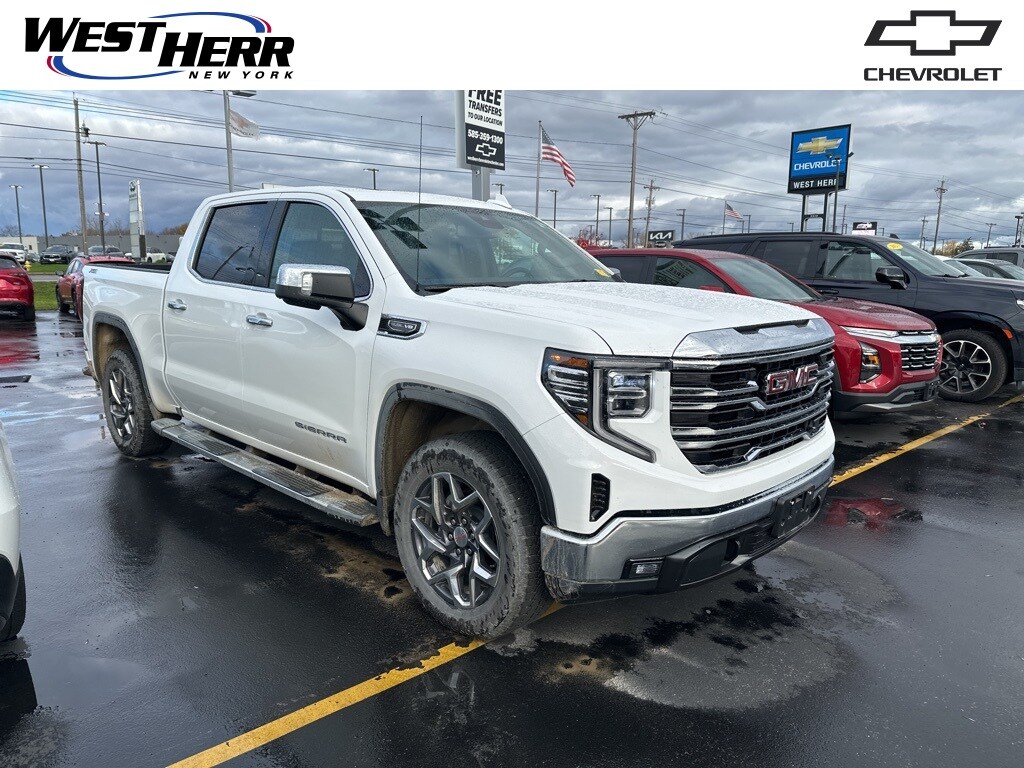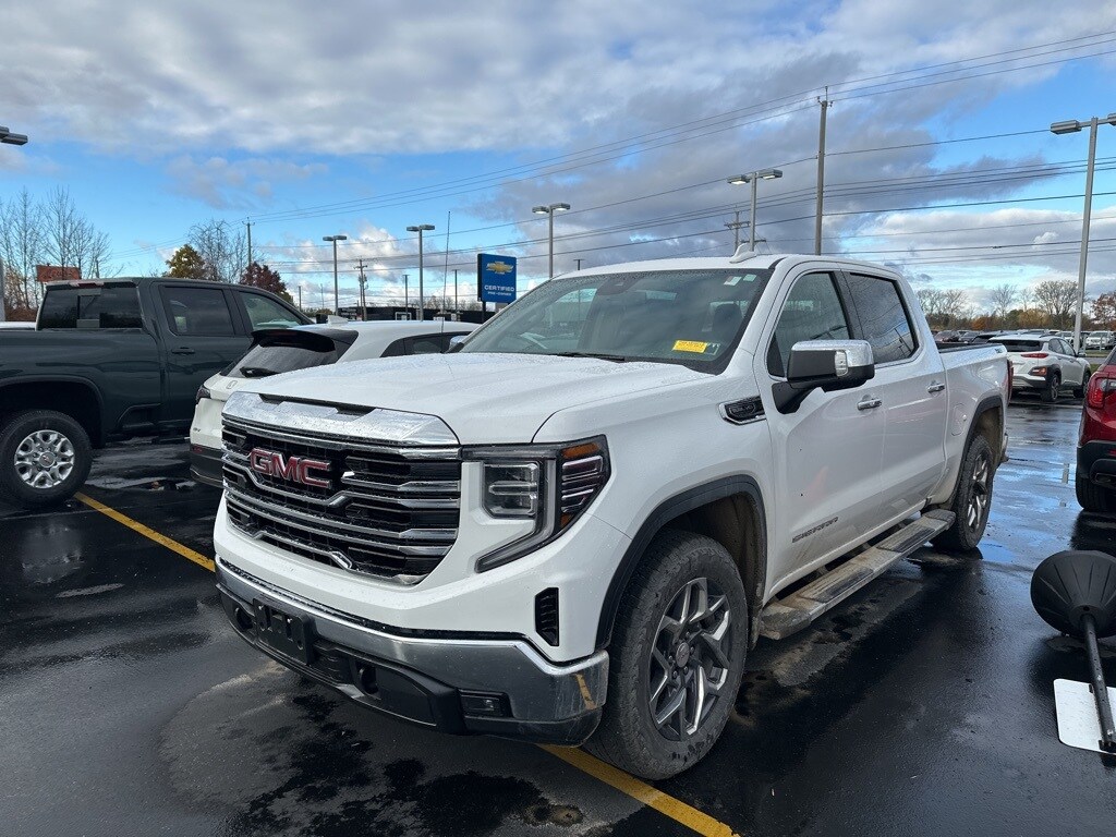 Summit White 2025 GMC Sierra 1500 SLT 4WD 10-Speed Automatic EcoTec3 5.3L V8 10-Speed Automatic, 4WD, Jet Black Leather, 120-Volt Bed Mounted Power Outlet, 120-Volt Interior Power Outlet, 170 Amp Alternator, 2 Charge/Data USB Ports, 2 Charge/Data USB Ports Inside Center Console, 2 Type-C Charge-Only Rear USB Ports, 20" Polished Aluminum Wheels, 6-Speaker Audio System Feature, Adaptive Cruise Control, Auto-Locking Rear Differential, Auxiliary External Transmission Oil Cooler, Chrome Header & Chrome Grille Insert Bars, Chrome Wheel To Wheel Assist Steps, Color-Keyed Carpeting Floor Covering, Deep-Tinted Glass, Dual Exhaust System, Electric Rear-Window Defogger, Electronic Precision Shift, Floor-Mounted Center Console, Front Bucket Seats, Front Frame-Mounted Black Recovery Hooks, Front Rain-Sensing Wipers, HD Rear Vision Camera, Heated 2nd Row Outboard Seats, Heavy-Duty Air Filter, High Capacity Suspension Package, Hill Descent Control, Hitch Guidance, Hitch View, In-Vehicle Trailering System App, Integrated Trailer Brake Controller, Keyless Open & Start, LED Cargo Area Lighting, Manual Tilt-Wheel & Telescoping Steering Column, Off-Road Suspension, OnStar Services Capable, Perimeter Lighting, Power Door Locks, Power Front Passenger Windows w/Express Up/Down, Power Front Windows w/Driver Express Up/Down, Power Rake & Telescoping Steering Column, Power Rear Windows w/Express Down, Power Sliding Rear Window w/Rear Defogger, Preferred Equipment Group 4SA, Premium Bose 7-Speaker Sound System, ProGrade Trailering System, Push Button Start, Rear Wheelhouse Liners, Remote Vehicle Starter System, SiriusXM w/360L Trial Subscription, SLT Convenience Package, SLT Preferred Package, SLT Premium Package, Standard Suspension Package, Steering Wheel Audio Controls, Theft Deterrent System (Unauthorized Entry), Trailering Package, Universal Home Remote, Ventilated Driver & Front Passenger Seats, Wi-Fi Hotspot Capable, Wireless Charging, X31 Hard Badge, X31 Off-Road Package.