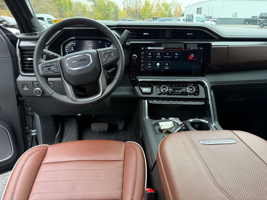 Sterling Metallic 2025 GMC Sierra 2500HD Denali Ultimate 4WD 10-Speed Automatic Duramax 6.6L V8 Turbodiesel Sierra 2500HD Denali Ultimate, 4D Crew Cab, Duramax 6.6L V8 Turbodiesel, 4WD, Sterling Metallic, Alpine Umber Leather, 120-Volt Bed Mounted Power Outlet, 120-Volt Instrument Panel Power Outlet, 16-Way Power Driver Seat Adjuster w/Lumbar, 16-Way Power Passenger Seat Adjuster w/Lumbar, 2 Charge-Only Rear USB Ports, 2 Charge/Data USB Ports Inside Center Console, 2 USB Ports, 2-Speed Active Transfer Case, 220-Amp Alternator, Apple CarPlay/Android Auto, Bed View Camera w/2 Trailer Camera Provisions, Bose Premium Series 12-Speaker System, Deep-Tinted Glass, Driver Memory, Electric Rear-Window Defogger, Floor-Mounted Center Console, Front Rain-Sensing Wipers, Garage door transmitter, Gooseneck/5th Wheel Prep Package, HD Surround Vision, Heads-Up Display, Heated 2nd Row Outboard Seats, Heated door mirrors, Heated Driver & Front Outboard Passenger Seats, Hill Descent Control, Inside Rearview Auto-Dimming Rear Camera Mirror, Keyless Open & Start, Lane Departure Warning System, LED Cargo Area Lighting, LED Smoked Amber Roof Marker Lamps, Manual Tilt-Wheel/Telescoping Steering Column, Memory seat, Multicolor 15" Diagonal Head-Up Display, OnStar Services Capable, Power driver seat, Power Front Passenger Windows w/Express Up/Down, Power Sliding Rear Window w/Defogger, Power Sunroof, Preferred Equipment Group 5SB, Push Button Start, Rear Cross Traffic Alert, Rear Wheelhouse Liners, Remote Vehicle Starter System, Safety Alert Seat, Signature Denali Ultimate Grille in Vadar Chrome, SiriusXM w/360L Trial Subscription, Snow Plow Prep/Camper Package, Spray-On Pickup Bedliner w/GMC Logo, Steering Wheel Audio Controls, Steering wheel mounted audio controls, Technology Package, Trailer Cam Provisions & Trailer Viewing Software, Trailer Side Blind Zone Alert, Trailer Tire Pressure Monitor Sensors, Ultrasonic Front & Rear Park Assist, Unauthorized Entry Theft-Deterrent System, Universal Home Remote, Ventilated Driver & Front Passenger Seats, Wheels: 20" Ultra-Bright Machined Aluminum, Wireless Charging, Wireless Phone Projection, X31 Off-Road Package.
