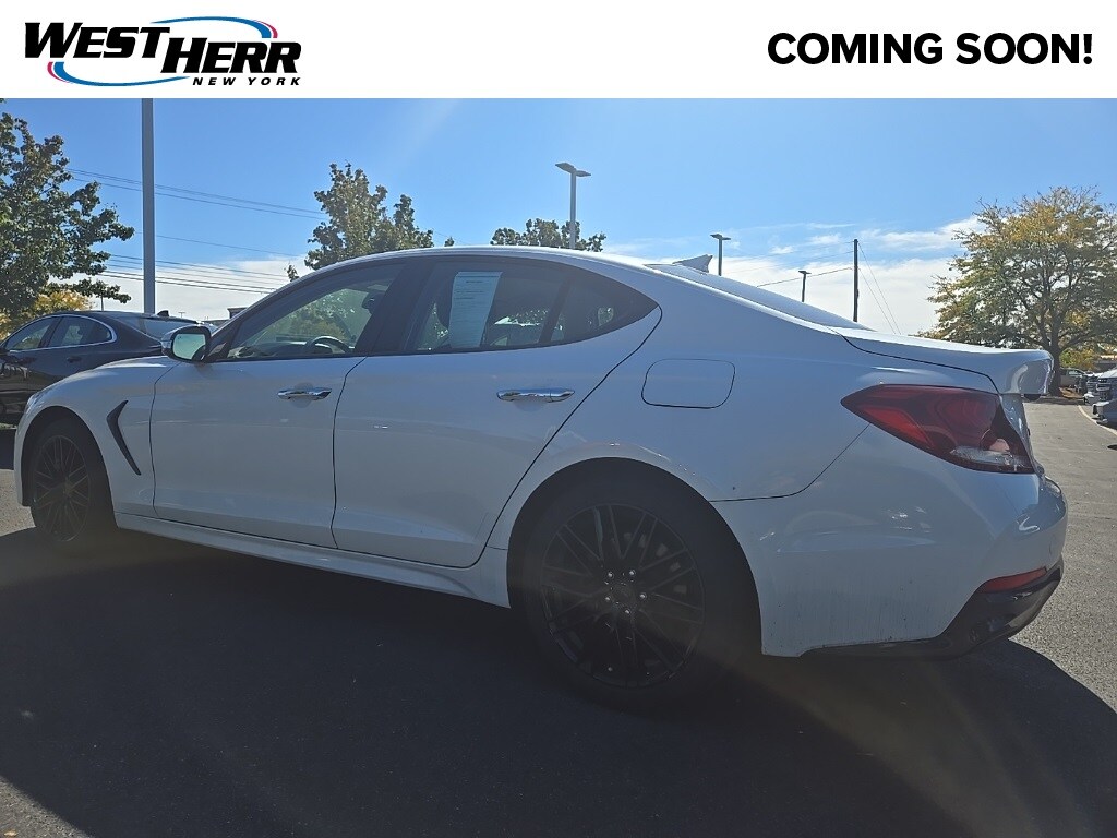 G70 2.0T, 4D Sedan, 2.0L Turbocharged, 8-Speed Automatic, Uyuni White, Black w/Leatherette Seating Surfaces, 6 Speakers, AM/FM radio: SiriusXM, Android Auto & Apple CarPlay, Anti-whiplash front head restraints, Automatic temperature control, Exterior Parking Camera Rear, Four wheel independent suspension, Front reading lights, Illuminated entry, Knee airbag, Leatherette Seating Surfaces, Outside temperature display, Power steering, Rear seat center armrest, Rear window defroster, Split folding rear seat, Traction control.