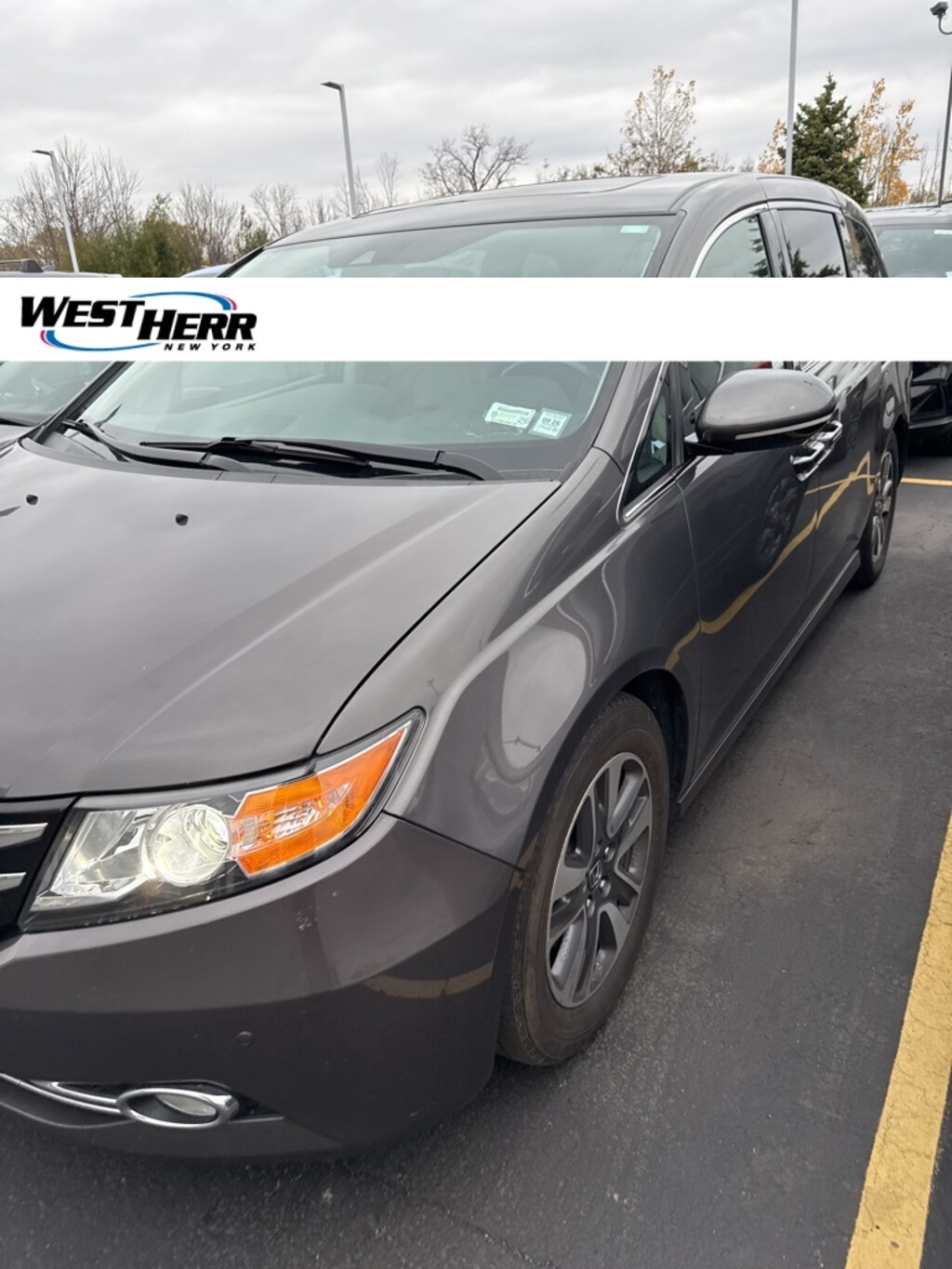 Odyssey Touring, 4D Passenger Van, 3.5L V6 SOHC i-VTEC 24V, 6-Speed Automatic, FWD, Leather, 18" x 7" Alloy Wheels, 4-Wheel Disc Brakes, 7 Speakers, Alloy wheels, AM/FM/CD Audio System w/7 Speakers, Auto-dimming Rear-View mirror, Automatic temperature control, CD player, Dual front impact airbags, Dual front side impact airbags, Exterior Parking Camera Rear, Front Bucket Seats, Front dual zone A/C, Headphones, Heated Front Bucket Seats, Leather Seat Trim, Memory seat, Navigation System, Power driver seat, Power Liftgate, Power moonroof, Power passenger seat, Power windows, Radio data system, Rear air conditioning, Rear audio controls, Rear window wiper, Speed-sensing steering, Speed-Sensitive Wipers, Steering wheel mounted audio controls. 2014 Honda Odyssey Touring