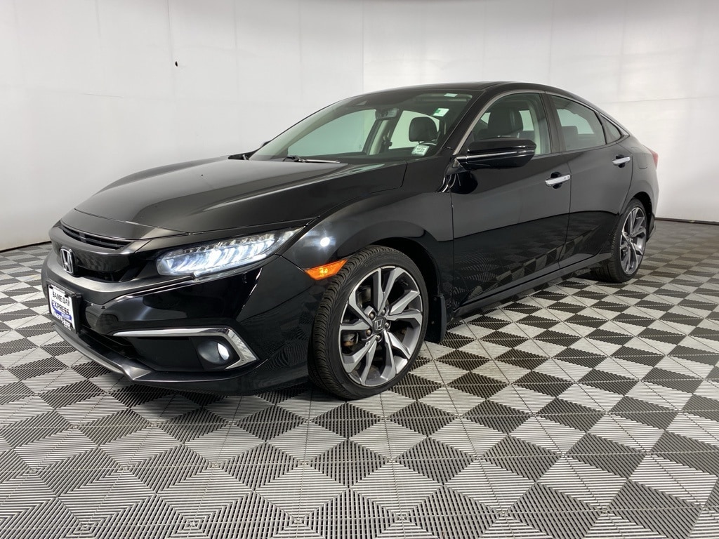 2019 Honda Civic Touring Black 10 Speakers, 4-Wheel Disc Brakes, Air Conditioning, AM/FM radio: SiriusXM, Apple CarPlay/Android Auto, Auto High-beam Headlights, Brake assist, Bumpers: body-color, Compass, Delay-off headlights, Driver vanity mirror, Dual front impact airbags, Dual front side impact airbags, Exterior Parking Camera Rear, Four wheel independent suspension, Front Bucket Seats, Front Center Armrest, Front dual zone A/C, Fully automatic headlights, Garage door transmitter: HomeLink, Heated door mirrors, Heated Front Bucket Seats, Heated front seats, Heated rear seats, Illuminated entry, Lane departure: Lane Keeping Assist System (LKAS) active, Leather Seat Trim, Occupant sensing airbag, Outside temperature display, Overhead airbag, Panic alarm, Passenger vanity mirror, Power driver seat, Power moonroof, Power passenger seat, Power steering, Radio: 450-Watt AM/FM/HD/SiriusXM Audio System, Rear window defroster, Remote keyless entry, Speed control, Split folding rear seat, Tachometer, Telescoping steering wheel, Tilt steering wheel, Traction control, Trip computer, Turn signal indicator mirrors. 30/38 City/Highway MPG