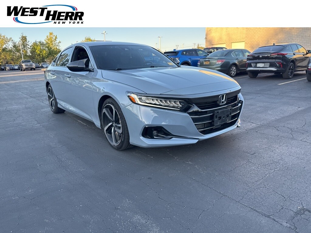 Accord Sport 2.0T, 4D Sedan, I4 DOHC 16V Turbocharged, 10-Speed Automatic, FWD, Sonic Gray Pearl, Black w/Cloth Seat Trim, 4-Wheel Disc Brakes, 8 Speakers, Adaptive Cruise Control: Adaptive Cruise Control (ACC) with Low-Speed Follow, Alloy wheels, Apple CarPlay/Android Auto, Auto High-beam Headlights, Automatic temperature control, Blind Spot Information (BSI) System warning, Dual front impact airbags, Dual front side impact airbags, Exterior Parking Camera Rear, Forward collision: Collision Mitigation Braking System (CMBS) + FCW mitigation, Front Center Armrest, Front dual zone A/C, Front fog lights, Heated door mirrors, Heated Front Bucket Seats, Lane Departure Warning System, Power door mirrors, Power driver seat, Power moonroof, Radio data system, Radio: 180-Watt AM/FM/HD/SiriusXM Audio System, Remote keyless entry, Speed-sensing steering, Speed-Sensitive Wipers, Steering wheel mounted audio controls, Wheels: 19" Machine-Finished Alloy w/Black Inserts. 2021 Honda Accord Sport 2.0T Sonic Gray Pearl