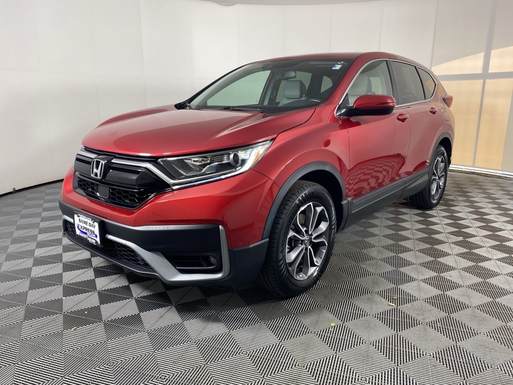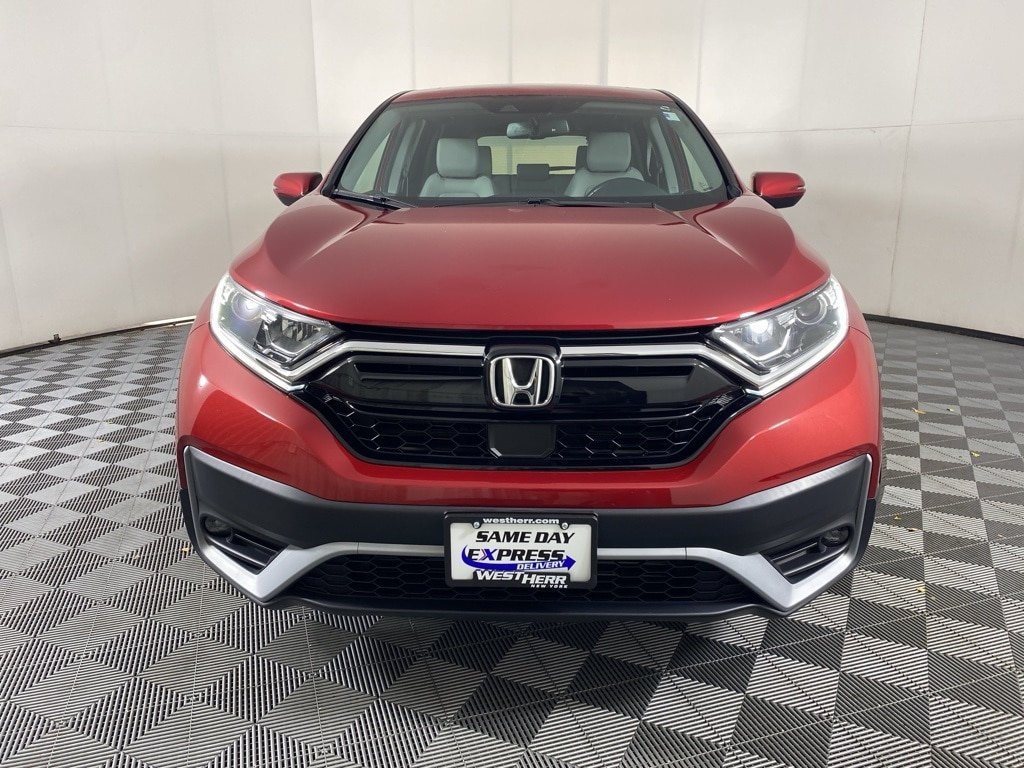 CR-V EX-L, 4D Sport Utility, 1.5L I4 DOHC 16V, CVT, AWD, Radiant Red Metallic, Black w/Leather Seat Trim, 18" Alloy Wheels, 4-Wheel Disc Brakes, 8 Speakers, Alloy wheels, Apple CarPlay/Android Auto, Auto High-beam Headlights, Automatic temperature control, Blind Spot Information (BSI) System warning, Delay-off headlights, Dual front impact airbags, Dual front side impact airbags, Electronic Stability Control, Exterior Parking Camera Rear, Forward collision: Collision Mitigation Braking System (CMBS) + FCW mitigation, Front Center Armrest, Front dual zone A/C, Garage door transmitter: HomeLink, Heated door mirrors, Heated Front Bucket Seats, Leather Seat Trim, Memory seat, Overhead airbag, Power Liftgate, Power moonroof, Power passenger seat, Radio data system, Radio: 180-Watt AM/FM/HD/SiriusXM Audio System, Rear seat center armrest, Rear window wiper, Remote keyless entry, Speed-sensing steering, Speed-Sensitive Wipers, Steering wheel mounted audio controls, Turn signal indicator mirrors. 2021 Honda CR-V EX-L Radiant Red Metallic