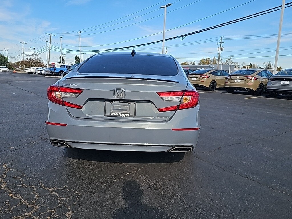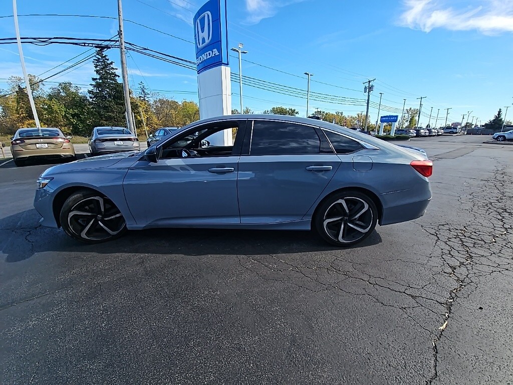 Accord Sport, 4D Sedan, 1.5T I4 DOHC 16V Turbocharged VTEC, CVT, FWD, 4-Wheel Disc Brakes, 8 Speakers, Alloy wheels, Apple CarPlay/Android Auto, Auto High-beam Headlights, Automatic temperature control, Dual front impact airbags, Dual front side impact airbags, Exterior Parking Camera Rear, Fabric w/Synthetic Leather Seat Trim, Forward collision: Collision Mitigation Braking System (CMBS) + FCW mitigation, Front Center Armrest, Front dual zone A/C, Front fog lights, Lane Departure Warning System, Power door mirrors, Power driver seat, Radio data system, Remote keyless entry, Speed-sensing steering, Speed-Sensitive Wipers, Steering wheel mounted audio controls, Wheels: 19" Machine-Finished Alloy w/Black Inserts. 2022 Honda Accord Sport Sonic Gray Pearl