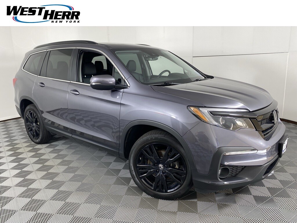 2022 Honda Pilot Special Edition 4-Wheel Disc Brakes, ABS brakes, AM/FM radio: SiriusXM, Auto High-beam Headlights, Automatic temperature control, Blind Spot Information (BSI) System warning, Exterior Parking Camera Rear, Four wheel independent suspension, Fully automatic headlights, Lane departure: Lane Keeping Assist System (LKAS) active, Memory seat, Power Liftgate, Power moonroof, Radio: 215-Watt Audio System, Steering wheel mounted audio controls, Wheels: 20" Exclusive Gloss Black Alloy. Modern Steel Metallic