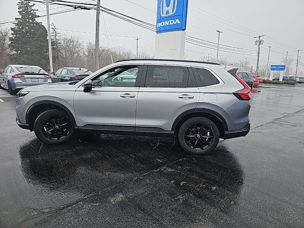 CR-V Hybrid Sport, 4D Sport Utility, 2.0L I4 DOHC 16V, eCVT, AWD, Lunar Silver Metallic, Black Cloth, 4-Wheel Disc Brakes, 6 Speakers, Adaptive Cruise Control: Adaptive Cruise Control (ACC) with Low-Speed Follow, Alloy wheels, Apple CarPlay/Android Auto, Auto High-beam Headlights, Automatic temperature control, Delay-off headlights, Dual front impact airbags, Dual front side impact airbags, Electronic Stability Control, Exterior Parking Camera Rear, Front dual zone A/C, Heated door mirrors, Heated Front Bucket Seats, Heated front seats, Leather steering wheel, Power door mirrors, Power driver seat, Radio: 240-Watt AM/FM Audio System, Remote keyless entry, Speed-sensing steering, Speed-Sensitive Wipers, Steering wheel mounted audio controls, Turn signal indicator mirrors, Variably intermittent wipers, Wheels: 18" Berlina Black Alloy. 2023 Honda CR-V Hybrid Sport Lunar Silver Metallic