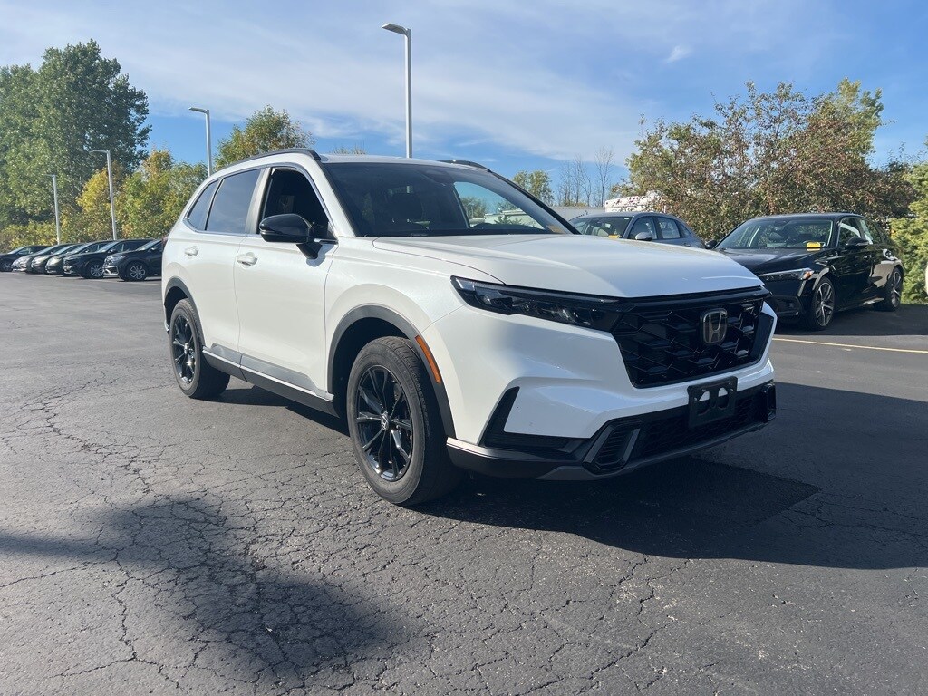 CR-V Hybrid Sport, 4D Sport Utility, 2.0L I4 DOHC 16V, eCVT, AWD, Cloth, 4-Wheel Disc Brakes, 6 Speakers, Alloy wheels, Apple CarPlay/Android Auto, Auto High-beam Headlights, Automatic temperature control, Dual front impact airbags, Dual front side impact airbags, Electronic Stability Control, Exterior Parking Camera Rear, Front Center Armrest, Front dual zone A/C, Fully automatic headlights, Heated door mirrors, Heated Front Bucket Seats, Power door mirrors, Power driver seat, Power moonroof, Radio: 240-Watt AM/FM Audio System, Rear window defroster, Rear window wiper, Remote keyless entry, Speed-sensing steering, Speed-Sensitive Wipers, Steering wheel mounted audio controls, Turn signal indicator mirrors, Wheels: 18" Berlina Black Alloy. 2023 Honda CR-V Hybrid Sport