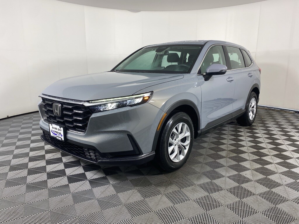 CR-V LX, 4D Sport Utility, 1.5L I4 DOHC 16V, CVT, AWD, Urban Gray Pearl, Black w/Cloth Seat Trim, 4 Speakers, 4-Wheel Disc Brakes, Adaptive Cruise Control: Adaptive Cruise Control (ACC) with Low-Speed Follow, Apple CarPlay/Android Auto, Auto High-beam Headlights, Automatic temperature control, Dual front impact airbags, Dual front side impact airbags, Electronic Stability Control, Exterior Parking Camera Rear, Front Bucket Seats, Front Center Armrest, Fully automatic headlights, Power door mirrors, Power steering, Radio: 160-Watt AM/FM Audio System, Rear window defroster, Rear window wiper, Remote keyless entry, Speed-sensing steering, Speed-Sensitive Wipers, Steering wheel mounted audio controls, Turn signal indicator mirrors, Wheels: 17" Steel w/Covers. 2023 Honda CR-V LX Urban Gray Pearl