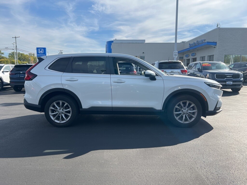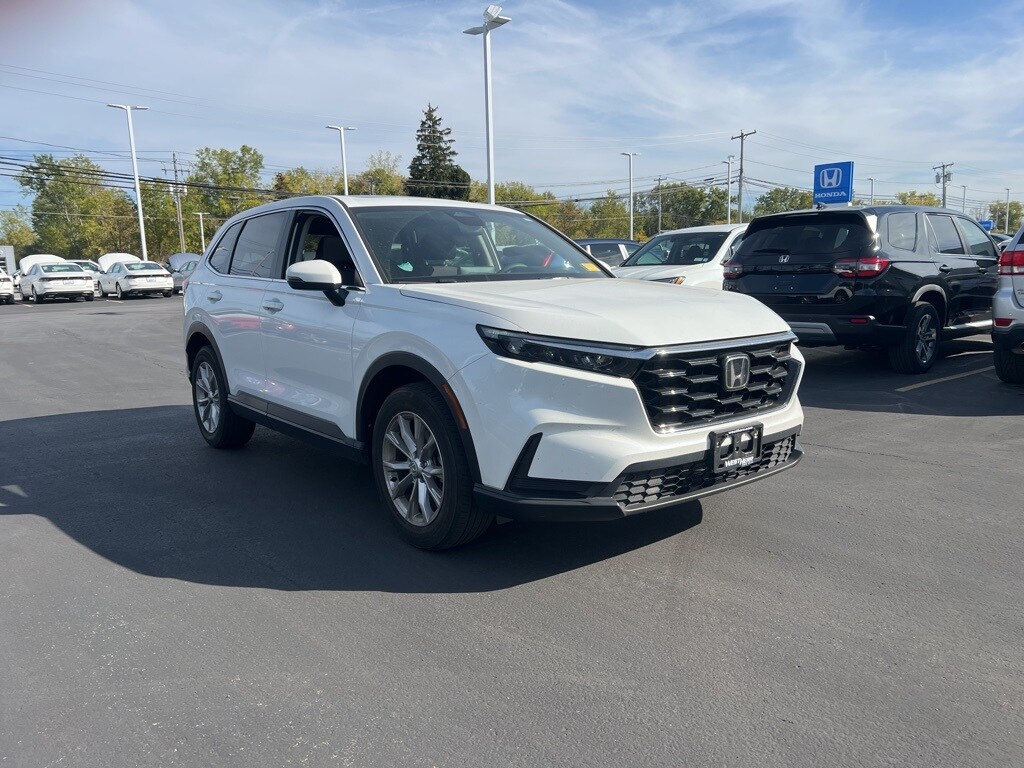 CR-V EX, 4D Sport Utility, 1.5L I4 DOHC 16V, CVT, AWD, Platinum White Pearl, Black w/Cloth Seat Trim, 4-Wheel Disc Brakes, 6 Speakers, Alloy wheels, Apple CarPlay/Android Auto, Auto High-beam Headlights, Automatic temperature control, Dual front impact airbags, Dual front side impact airbags, Exterior Parking Camera Rear, Front Center Armrest, Front dual zone A/C, Fully automatic headlights, Heated door mirrors, Heated Front Bucket Seats, Power door mirrors, Power driver seat, Power moonroof, Radio: 240-Watt AM/FM Audio System, Rear window defroster, Rear window wiper, Remote keyless entry, Speed-sensing steering, Speed-Sensitive Wipers, Steering wheel mounted audio controls, Telescoping steering wheel, Turn signal indicator mirrors, Wheels: 18" Sparkle Silver Metallic. 2023 Honda CR-V EX Platinum White Pearl