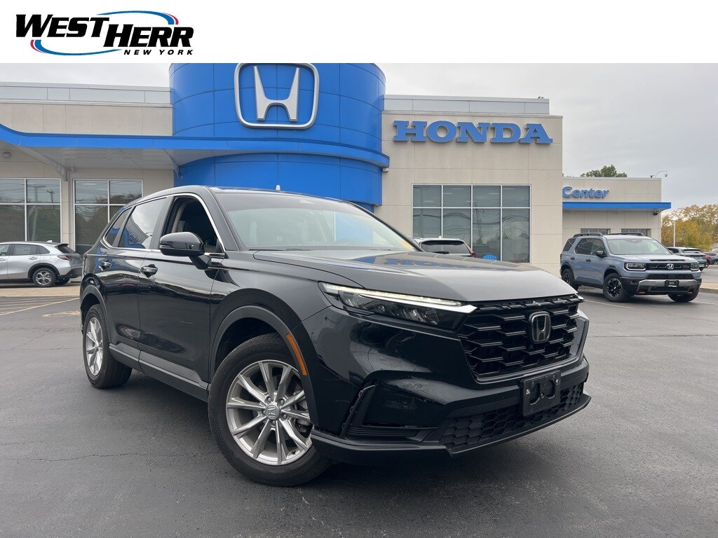 CR-V EX, 4D Sport Utility, 1.5L I4 DOHC 16V, CVT, AWD, sparkle silver metallic, Cloth, 4-Wheel Disc Brakes, 6 Speakers, Alloy wheels, Apple CarPlay/Android Auto, Automatic temperature control, Delay-off headlights, Dual front impact airbags, Dual front side impact airbags, Electronic Stability Control, Exterior Parking Camera Rear, Front Center Armrest, Front dual zone A/C, Heated door mirrors, Heated Front Bucket Seats, Power door mirrors, Power driver seat, Power moonroof, Rear window wiper, Remote keyless entry, Speed-sensing steering, Speed-Sensitive Wipers, Steering wheel mounted audio controls, Turn signal indicator mirrors, Wheels: 18" Sparkle Silver Metallic. 2023 Honda CR-V EX sparkle silver metallic