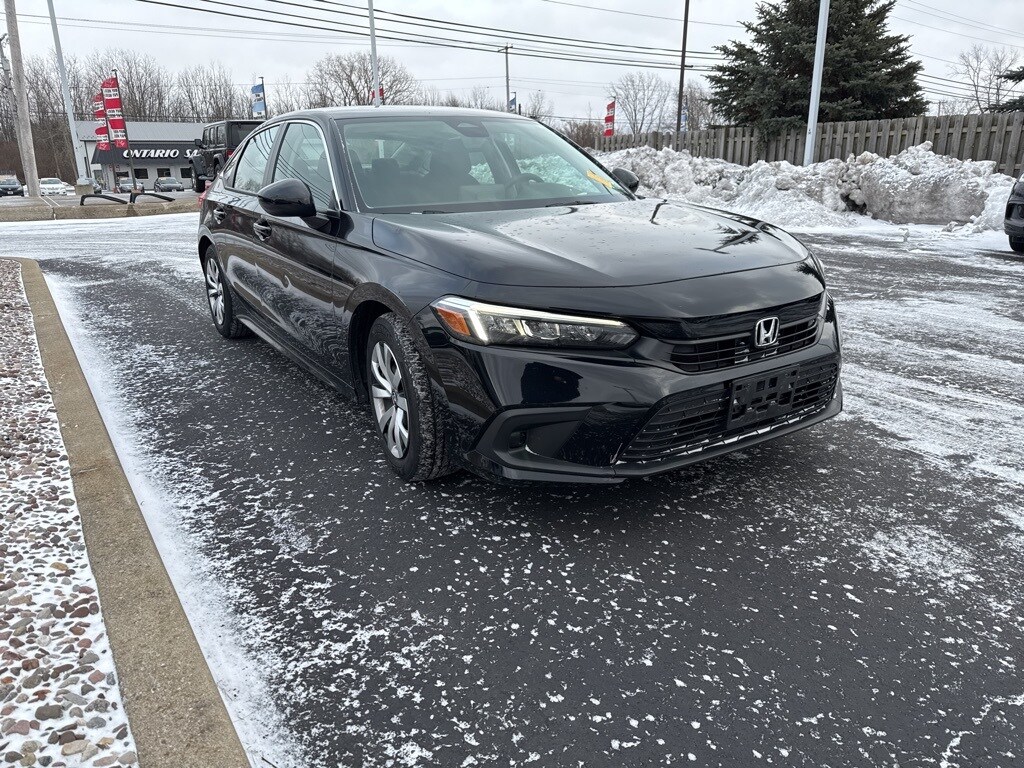Civic LX, 4D Sedan, 2.0L I4 DOHC 16V i-VTEC, CVT, FWD, Black w/Cloth Seat Trim, 4 Speakers, 4-Wheel Disc Brakes, Adaptive Cruise Control: Adaptive Cruise Control (ACC) with Low-Speed Follow, Apple CarPlay/Android Auto, Automatic temperature control, Delay-off headlights, Dual front impact airbags, Dual front side impact airbags, Electronic Stability Control, Exterior Parking Camera Rear, Front Bucket Seats, Front Center Armrest, Passenger door bin, Power door mirrors, Power steering, Radio data system, Radio: 160-Watt Audio System w/4 Speakers, Remote keyless entry, Speed-sensing steering, Steering wheel mounted audio controls. 2023 Honda Civic LX Crystal Black Pearl
