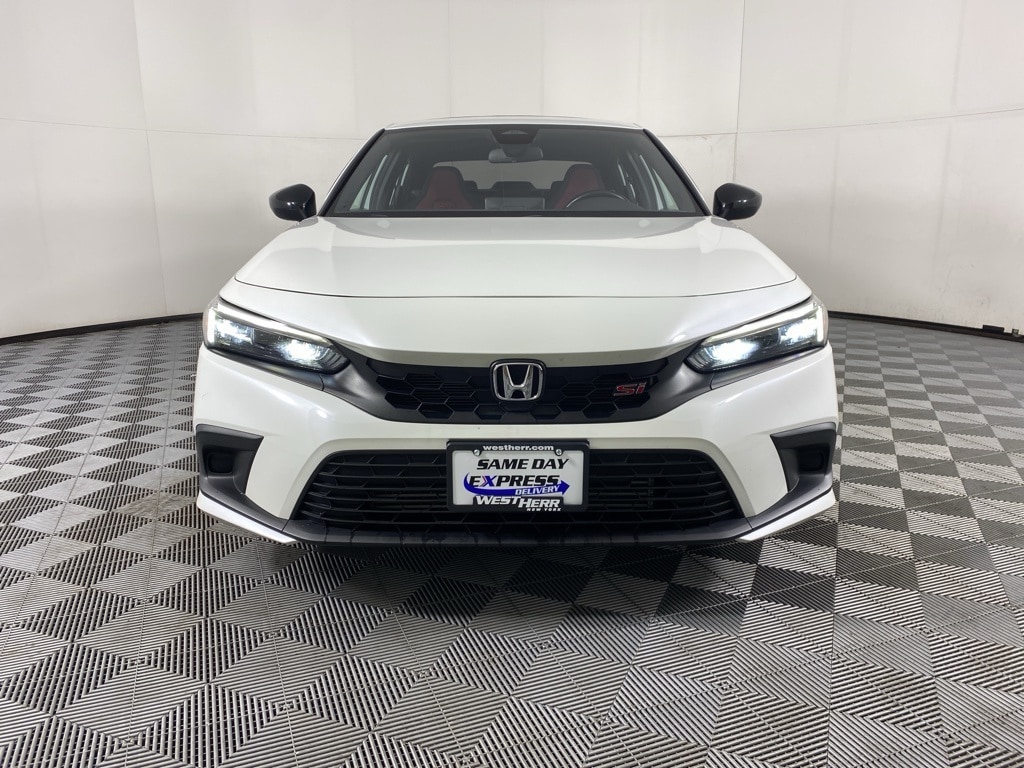 Civic Si, 4D Sedan, 1.5L I4 DOHC 16V, 6-Speed Manual, FWD, Platinum White Pearl, Black/Red w/Fabric Seat Trim, 12 Speakers, 4-Wheel Disc Brakes, Alloy wheels, Apple CarPlay/Android Auto, Auto High-beam Headlights, Automatic temperature control, Bose Premium Sound System, Dual front impact airbags, Dual front side impact airbags, Electronic Stability Control, Exterior Parking Camera Rear, Front Bucket Seats, Front Center Armrest, Front dual zone A/C, Fully automatic headlights, Heated door mirrors, Power moonroof, Power steering, Radio data system, Remote keyless entry, Speed-sensing steering, Steering wheel mounted audio controls, Variably intermittent wipers, Wheels: 18" Matte Black Alloy. 2023 Honda Civic Si Platinum White Pearl