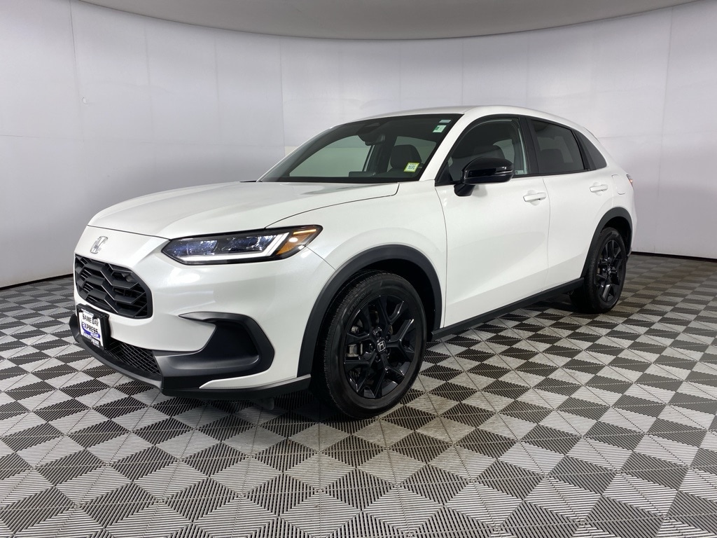 2023 Honda HR-V Sport White Clean CARFAX. CARFAX One-Owner. 6 Speakers, ABS brakes, Adaptive Cruise Control: Adaptive Cruise Control (ACC) with Low-Speed Follow, Air Conditioning, Blind Spot Information (BSI) System warning, Bumpers: body-color, Cloth Seat Trim, Delay-off headlights, Driver door bin, Dual front impact airbags, Dual front side impact airbags, Electronic Stability Control, Four wheel independent suspension, Front Bucket Seats, Front Center Armrest, Heated door mirrors, Heated Front Bucket Seats, Heated front seats, Illuminated entry, Knee airbag, Low tire pressure warning, Occupant sensing airbag, Outside temperature display, Overhead airbag, Panic alarm, Power door mirrors, Power steering, Radio data system, Rear reading lights, Rear side impact airbag, Rear window defroster, Remote keyless entry, Split folding rear seat, Spoiler, Steering wheel mounted audio controls, Tachometer, Telescoping steering wheel, Tilt steering wheel, Traction control, Trip computer. Odometer is 8402 miles below market average! 25/30 City/Highway MPG