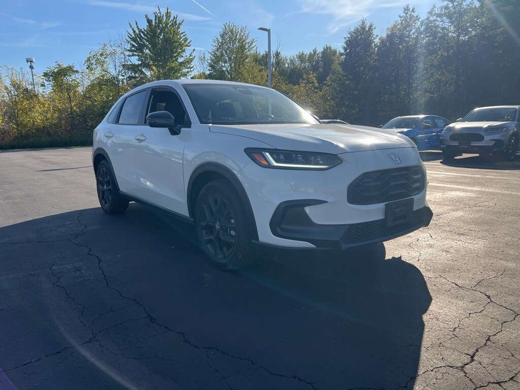 HR-V Sport, 4D Sport Utility, 2.0L I4 DOHC 16V i-VTEC, CVT, AWD, Platinum White Pearl, Black w/Cloth Seat Trim, 4-Wheel Disc Brakes, 6 Speakers, Adaptive Cruise Control: Adaptive Cruise Control (ACC) with Low-Speed Follow, Alloy wheels, Apple CarPlay/Android Auto, Auto High-beam Headlights, Automatic temperature control, Blind Spot Information (BSI) System warning, Dual front impact airbags, Dual front side impact airbags, Electronic Stability Control, Exterior Parking Camera Rear, Front Center Armrest, Fully automatic headlights, Heated door mirrors, Heated Front Bucket Seats, Power door mirrors, Power steering, Radio data system, Radio: 180-Watt Audio System w/6 Speakers, Rear window defroster, Rear window wiper, Remote keyless entry, Speed-sensing steering, Steering wheel mounted audio controls, Turn signal indicator mirrors, Wheels: 18" Gloss Black Alloy. 2023 Honda HR-V Sport Platinum White Pearl