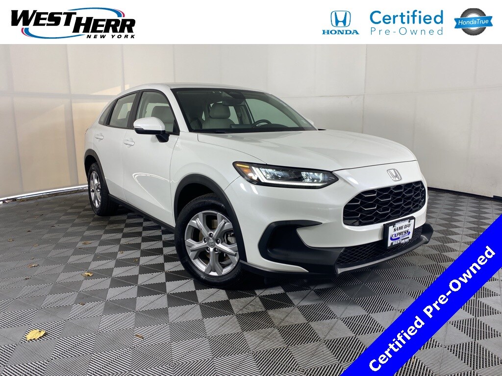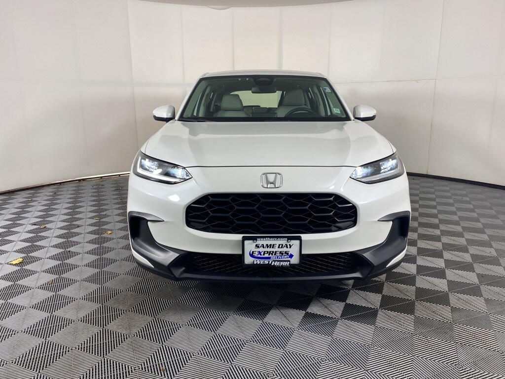 HR-V LX, 4D Sport Utility, 2.0L I4 DOHC 16V i-VTEC, CVT, AWD, Black w/Cloth Seat Trim, 4 Speakers, 4-Wheel Disc Brakes, Adaptive Cruise Control: Adaptive Cruise Control (ACC) with Low-Speed Follow, Alloy wheels, AM/FM radio, Apple CarPlay/Android Auto, Auto High-beam Headlights, Automatic temperature control, Dual front impact airbags, Dual front side impact airbags, Electronic Stability Control, Exterior Parking Camera Rear, Front Bucket Seats, Front Center Armrest, Fully automatic headlights, Power steering, Radio: 180-Watt Audio System w/4 Speakers, Rear window wiper, Remote keyless entry, Speed-sensing steering, Steering wheel mounted audio controls, Wheels: 17" Silver Painted Alloy. 2023 Honda HR-V LX Platinum White Pearl
