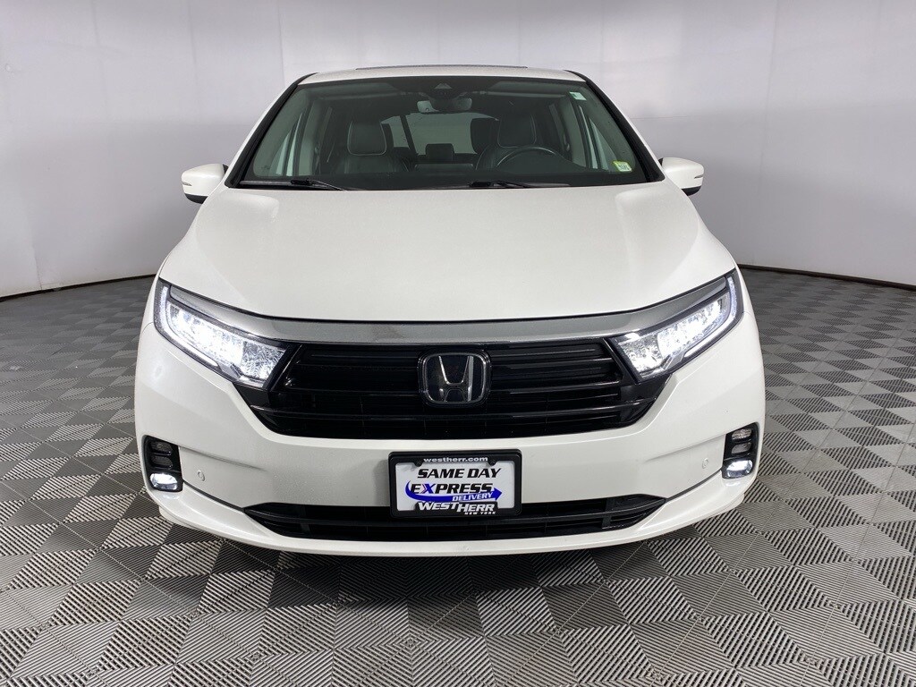2023 Honda Odyssey Elite White Clean CARFAX. CARFAX One-Owner. 11 Speakers, 3rd row seats: split-bench, 4-Wheel Disc Brakes, Adaptive Cruise Control: Adaptive Cruise Control (ACC) with Low-Speed Follow, AM/FM radio: SiriusXM, Anti-whiplash front head restraints, Apple CarPlay/Android Auto, Auto High-beam Headlights, Auto-dimming door mirrors, Automatic temperature control, Blind Spot Information (BSI) System warning, Bumpers: body-color, Compass, Delay-off headlights, Driver vanity mirror, Driver's Seat Mounted Armrest, Dual front impact airbags, Dual front side impact airbags, DVD-Audio, Electronic Stability Control, Front Bucket Seats, Front dual zone A/C, Front reading lights, Fully automatic headlights, Headphones, Heated door mirrors, Heated Front Bucket Seats, Heated front seats, Heated steering wheel, Knee airbag, Lane departure: Lane Keeping Assist System (LKAS) active, Leather Seat Trim, Leather steering wheel, Memory seat, Occupant sensing airbag, Outside temperature display, Overhead airbag, Passenger seat mounted armrest, Passenger vanity mirror, Power driver seat, Power Liftgate, Power moonroof, Power passenger seat, Power windows, Radio: 550-Watt AM/FM/HD Premium Audio System, Rear audio controls, Rear seat center armrest, Rear window defroster, Reclining 3rd row seat, Remote keyless entry, Security system, Speed-sensing steering, Split folding rear seat, Spoiler, Tachometer, Telescoping steering wheel, Tilt steering wheel, Traction control, Trip computer. 19/28 City/Highway MPG