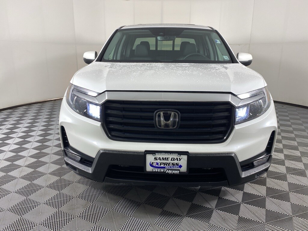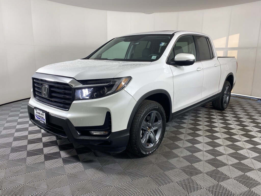 Ridgeline RTL, 4D Crew Cab, 3.5L V6 SOHC i-VTEC 24V, 9-Speed Automatic, AWD, Black w/Leather Seat Trim, 4-Wheel Disc Brakes, 7 Speakers, Alloy wheels, AM/FM radio: SiriusXM, Apple CarPlay/Android Auto, Auto-dimming Rear-View mirror, Automatic temperature control, Blind Spot Information (BSI) System warning, Bluetooth® Hands-Free Link, Dual front impact airbags, Dual front side impact airbags, Electronic Stability Control, Front dual zone A/C, Front fog lights, Garage door transmitter: HomeLink, Heated door mirrors, Heated Front Bucket Seats, Heated front seats, Memory seat, Panic alarm, Power door mirrors, Power driver seat, Power moonroof, Radio: 215-Watt Audio System w/7 Speakers, Rear window defroster, Remote keyless entry, SiriusXM, Speed-sensing steering, Steering wheel mounted audio controls, Turn signal indicator mirrors, Variably intermittent wipers, Wheels: 18" Exclusive Pewter Gray Alloy. 2023 Honda Ridgeline RTL Platinum White Pearl