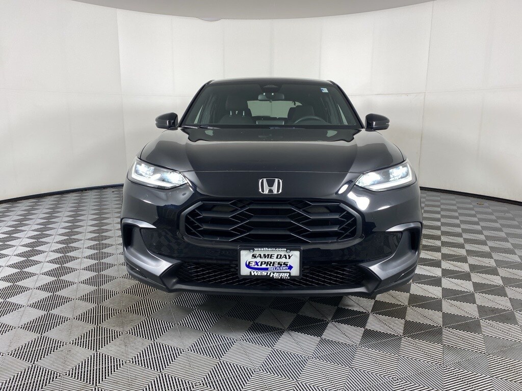 HR-V Sport, 4D Sport Utility, 2.0L I4 DOHC 16V i-VTEC, CVT, AWD, 4-Wheel Disc Brakes, 6 Speakers, Adaptive Cruise Control: Adaptive Cruise Control (ACC) with Low-Speed Follow, Alloy wheels, Apple CarPlay/Android Auto, Automatic temperature control, Delay-off headlights, Dual front impact airbags, Dual front side impact airbags, Electronic Stability Control, Exterior Parking Camera Rear, Front Center Armrest, Fully automatic headlights, Heated door mirrors, Heated Front Bucket Seats, Power steering, Radio data system, Radio: 180-Watt Audio System w/6 Speakers, Rear window defroster, Rear window wiper, Remote keyless entry, Speed-sensing steering, Steering wheel mounted audio controls, Turn signal indicator mirrors, Wheels: 18" Gloss Black Alloy. 2024 Honda HR-V Sport Crystal Black Pearl