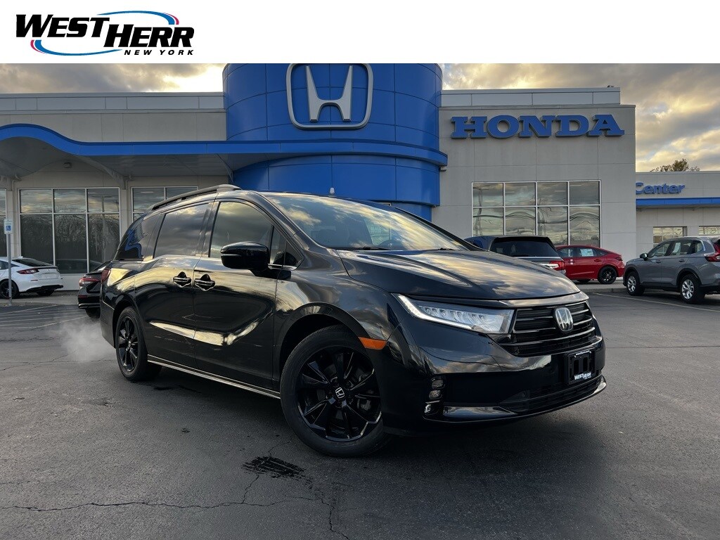 Odyssey Sport, 4D Passenger Van, 3.5L V6 SOHC i-VTEC 24V, 10-Speed Automatic, FWD, Leather, 4-Wheel Disc Brakes, 7 Speakers, Adaptive Cruise Control: Adaptive Cruise Control (ACC) with Low-Speed Follow, Alloy wheels, AM/FM radio: SiriusXM, Apple CarPlay/Android Auto, Auto High-beam Headlights, Automatic temperature control, Blind Spot Information (BSI) System warning, Dual front impact airbags, Dual front side impact airbags, Electronic Stability Control, Exterior Parking Camera Rear, Four wheel independent suspension, Front Bucket Seats, Front dual zone A/C, Front fog lights, Garage door transmitter: HomeLink, Heated door mirrors, Heated Front Bucket Seats, Lane departure: Lane Keeping Assist System (LKAS) active, Leather Seat Trim, Memory seat, Power Liftgate, Power moonroof, Power passenger seat, Radio: 160-Watt AM/FM/HD/SiriusXM Audio System, Rear air conditioning, Rear window wiper, Remote keyless entry, Speed-sensing steering, Speed-Sensitive Wipers, Steering wheel mounted audio controls, Turn signal indicator mirrors, Wheels: 19" Gloss Black Alloy. 2024 Honda Odyssey Sport