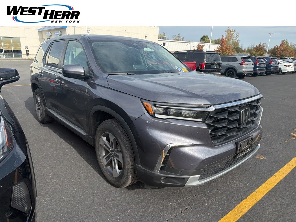 CARFAX One-Owner. Clean CARFAX. Modern Steel Metallic 2024 Honda Pilot EX-L 7 Passenger AWD 10-Speed Automatic 3.5L V6 DOHC 24V 9 Speakers, Apple CarPlay/Android Auto, Blind Spot Information (BSI) System warning, Exterior Parking Camera Rear, Garage door transmitter: HomeLink, Heated door mirrors, Heated Front Bucket Seats, Lane departure: Lane Keeping Assist System (LKAS) active, Leather Seat Trim, Memory seat, Power driver seat, Power Liftgate, Radio: 245-Watt Audio System.