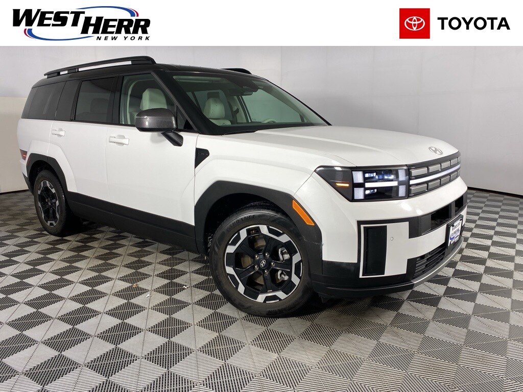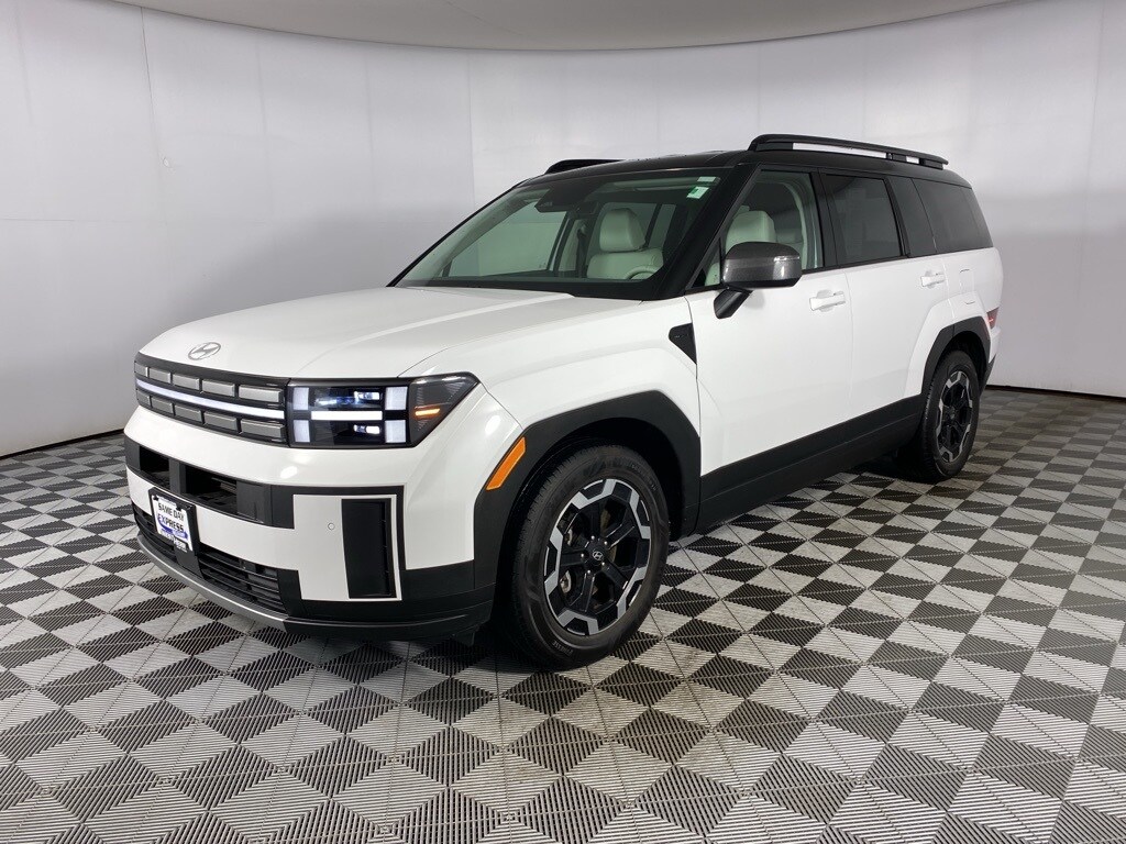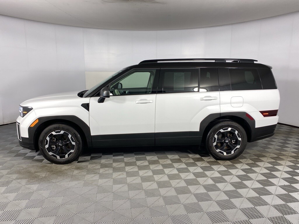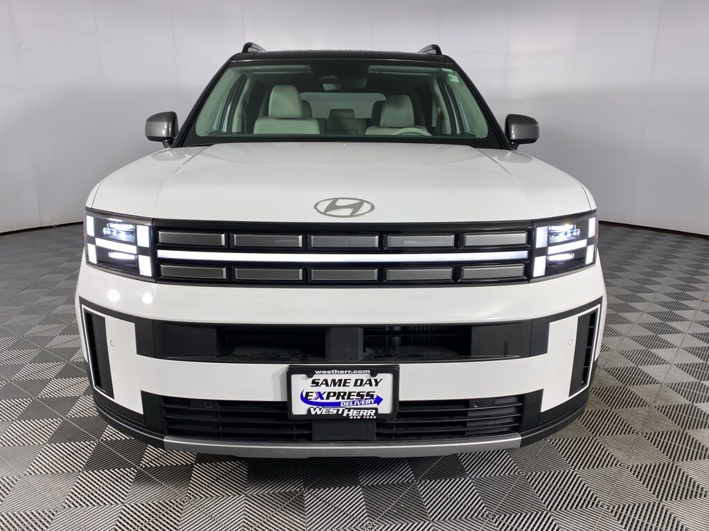 2024 Hyundai Santa Fe SEL Serenity White CARFAX One-Owner. 3rd row seats: bench, 4-Wheel Disc Brakes, 6 Speakers, Air Conditioning, Auto High-beam Headlights, Brake assist, Carpeted Floor Mats, Delay-off headlights, Driver door bin, Driver vanity mirror, Dual front impact airbags, Dual front side impact airbags, Front Bucket Seats, Front Center Armrest, Front dual zone A/C, Front reading lights, H-Tex Leatherette Seat Trim, Heated Front Bucket Seats, Heated front seats, Knee airbag, Leather steering wheel, Occupant sensing airbag, Overhead airbag, Overhead console, Panic alarm, Power door mirrors, Power driver seat, Power Liftgate, Power windows, Radio: AM/FM/HD Display Audio, Rear seat center armrest, Rear side impact airbag, Rear window defroster, Speed control, Speed-sensing steering, Split folding rear seat, Steering wheel mounted audio controls, Tachometer, Telescoping steering wheel, Tilt steering wheel, Traction control, Trip computer, Turn signal indicator mirrors. 20/28 City/Highway MPG