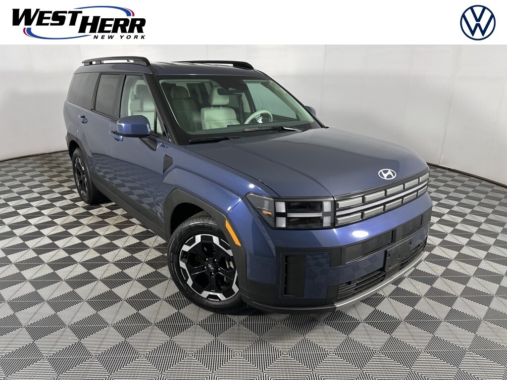 2025 Hyundai Santa Fe SEL Atlantis Blue 3rd row seats: bench, Apple CarPlay & Android Auto, Exterior Parking Camera Rear, Four wheel independent suspension, Front dual zone A/C, Fully automatic headlights, H-Tex Leatherette Seat Trim, Heated Front Bucket Seats, Heated front seats, Option Group 01, Steering wheel mounted audio controls, Turn signal indicator mirrors, Variably intermittent wipers. 20/28 City/Highway MPG