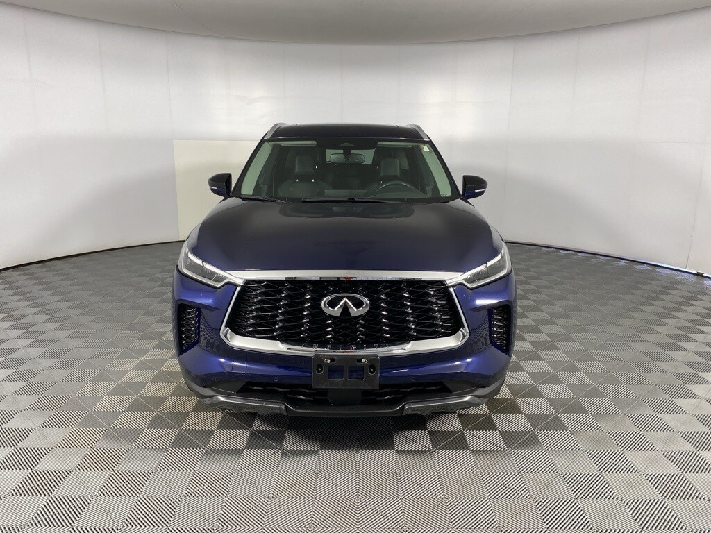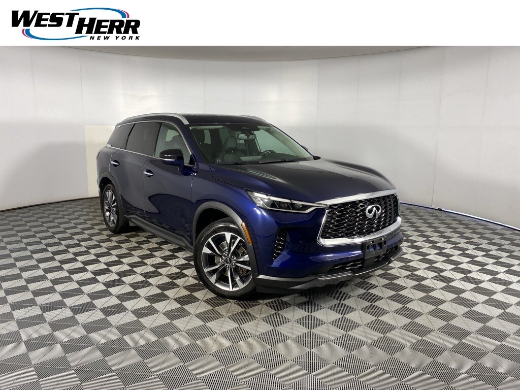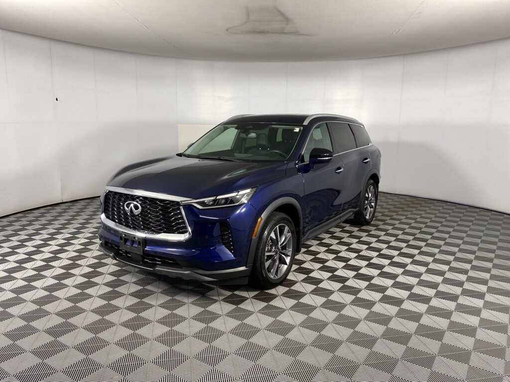 Certified. 2022 INFINITI QX60 LUXE Grand Blue Clean CARFAX. INFINITI Certified Pre-Owned Certified, Backup Camera, Sunroof / Moonroof, Navigation System, Heated Seats, Cooled Seats, Heated Steering Wheel, Brake assist, Cargo Mat (Reversible), Cargo Package, First Aid Kit, Heated front seats, Power Liftgate, Power moonroof.